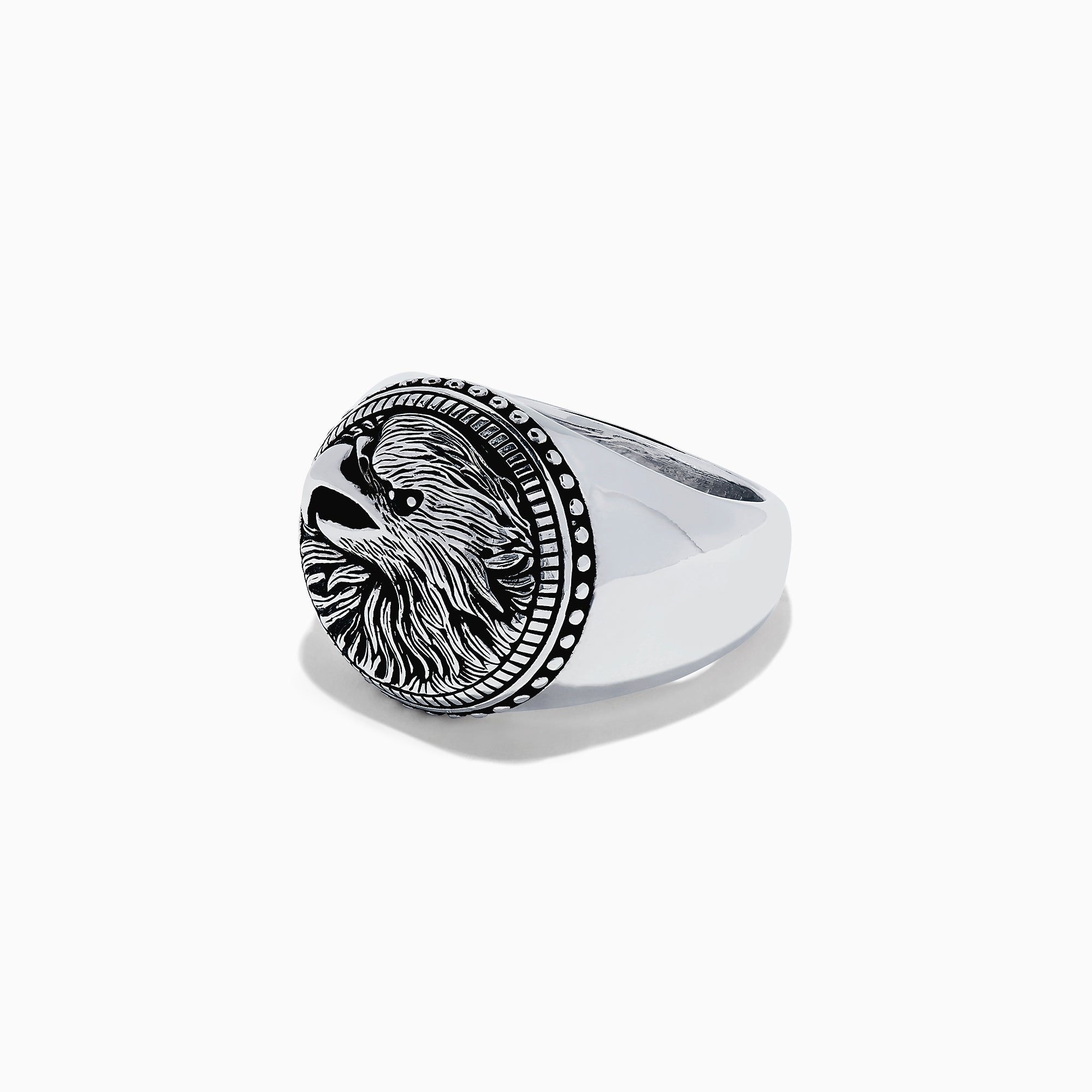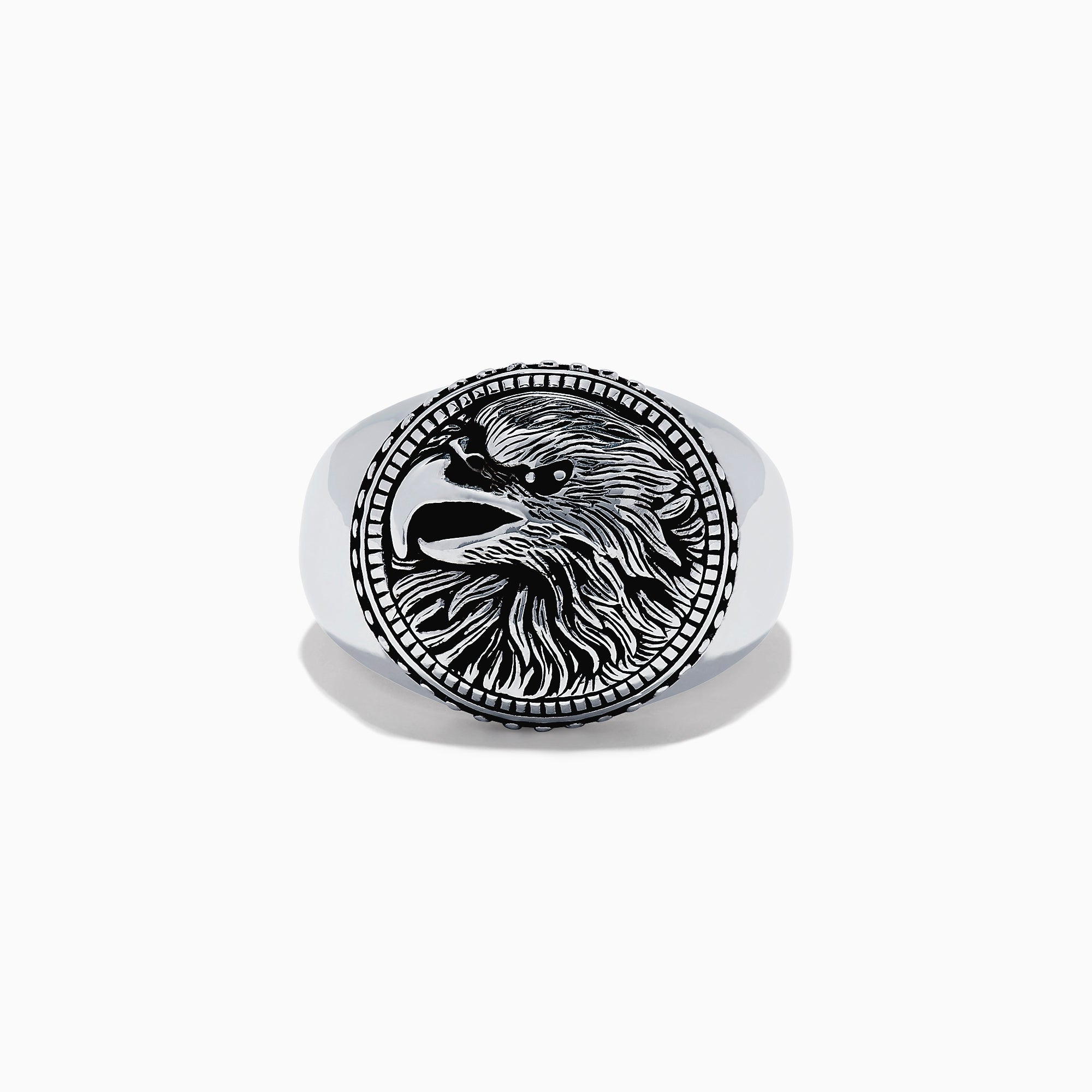 Effy Men's Sterling Silver Black Spinel Eagle Ring, 0.01 TCW