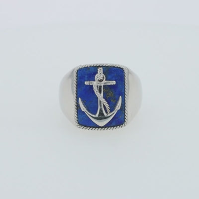Men's Sterling Silver Lapis Lazuli Anchor Ring, 5.90 TCW