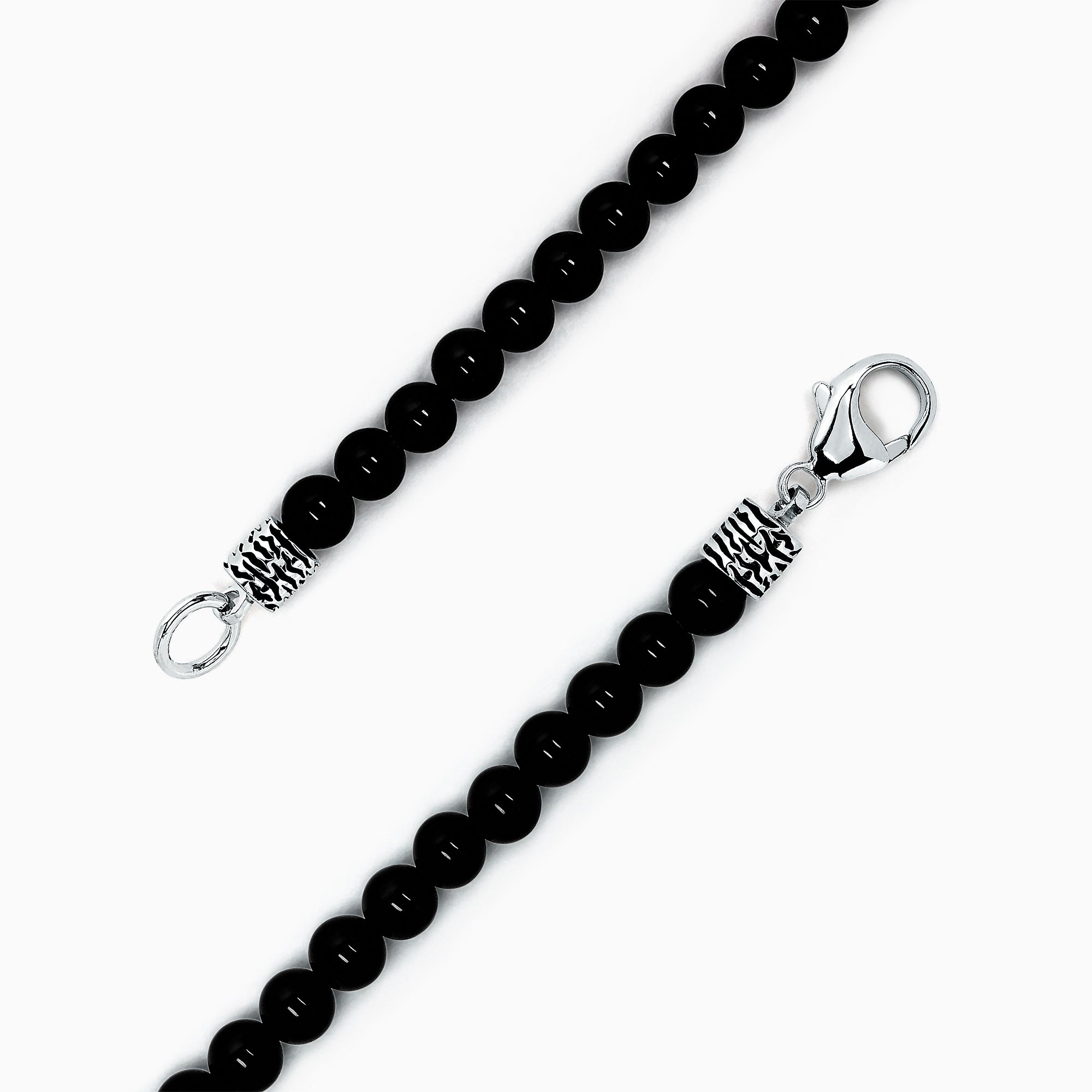 Men's Sterling Silver Beaded Onyx Skull Bracelet, 38.50 TCW