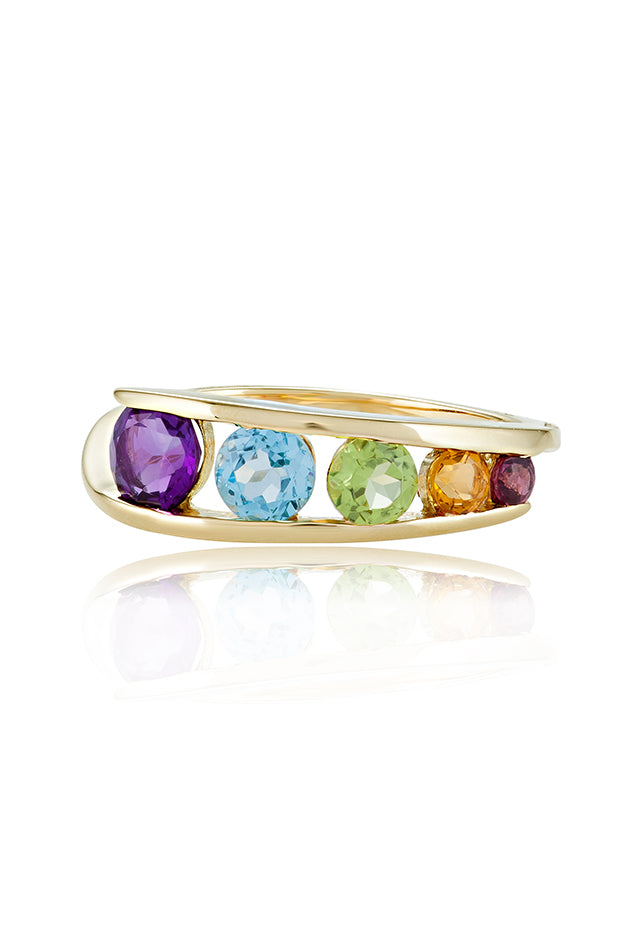Mosaic 14K Yellow Gold Multi Gemstone Ring, 1.33 TCW