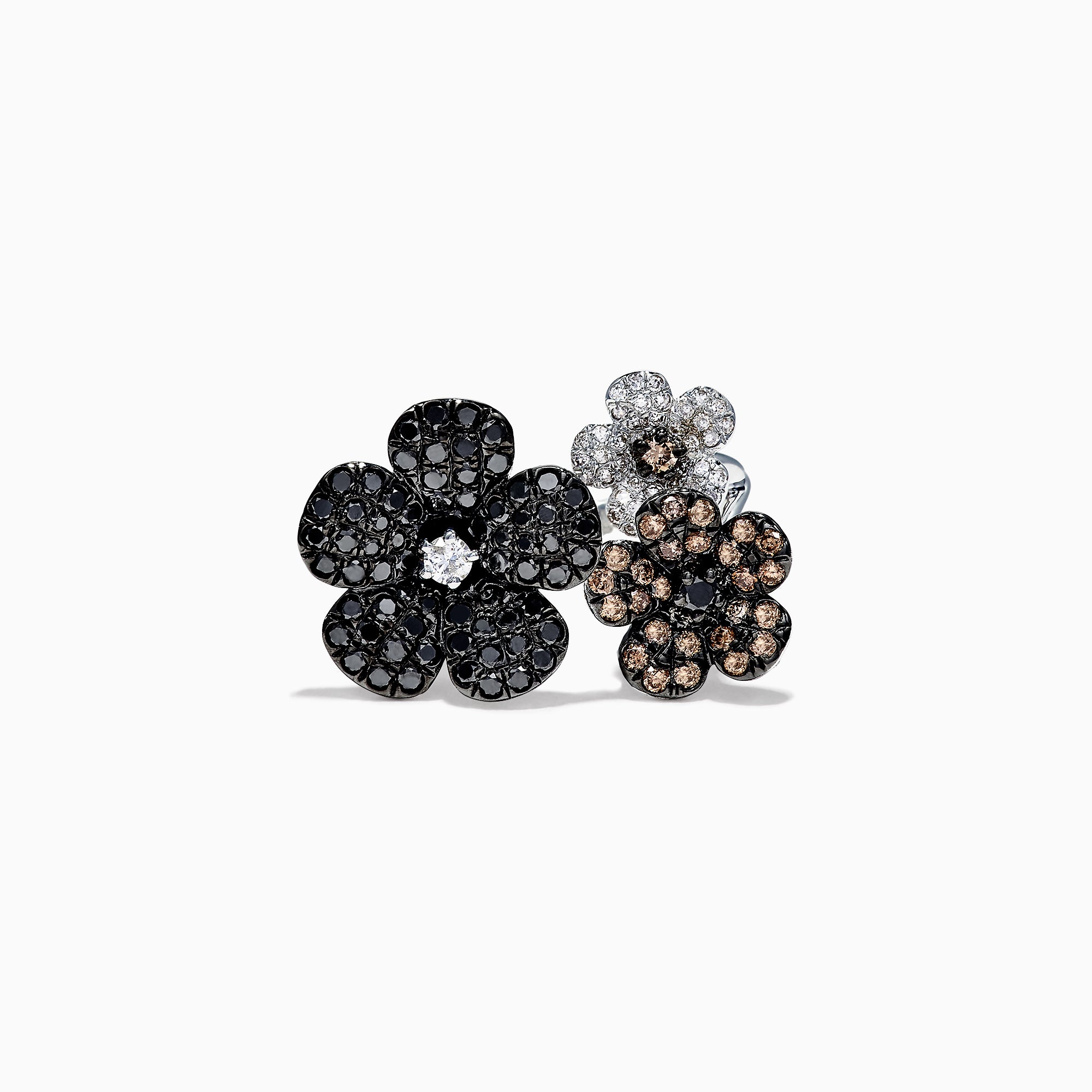 Effy Nature 14K Gold Black, Espresso & White Diamond Flower Ring, 1.33 TCW
