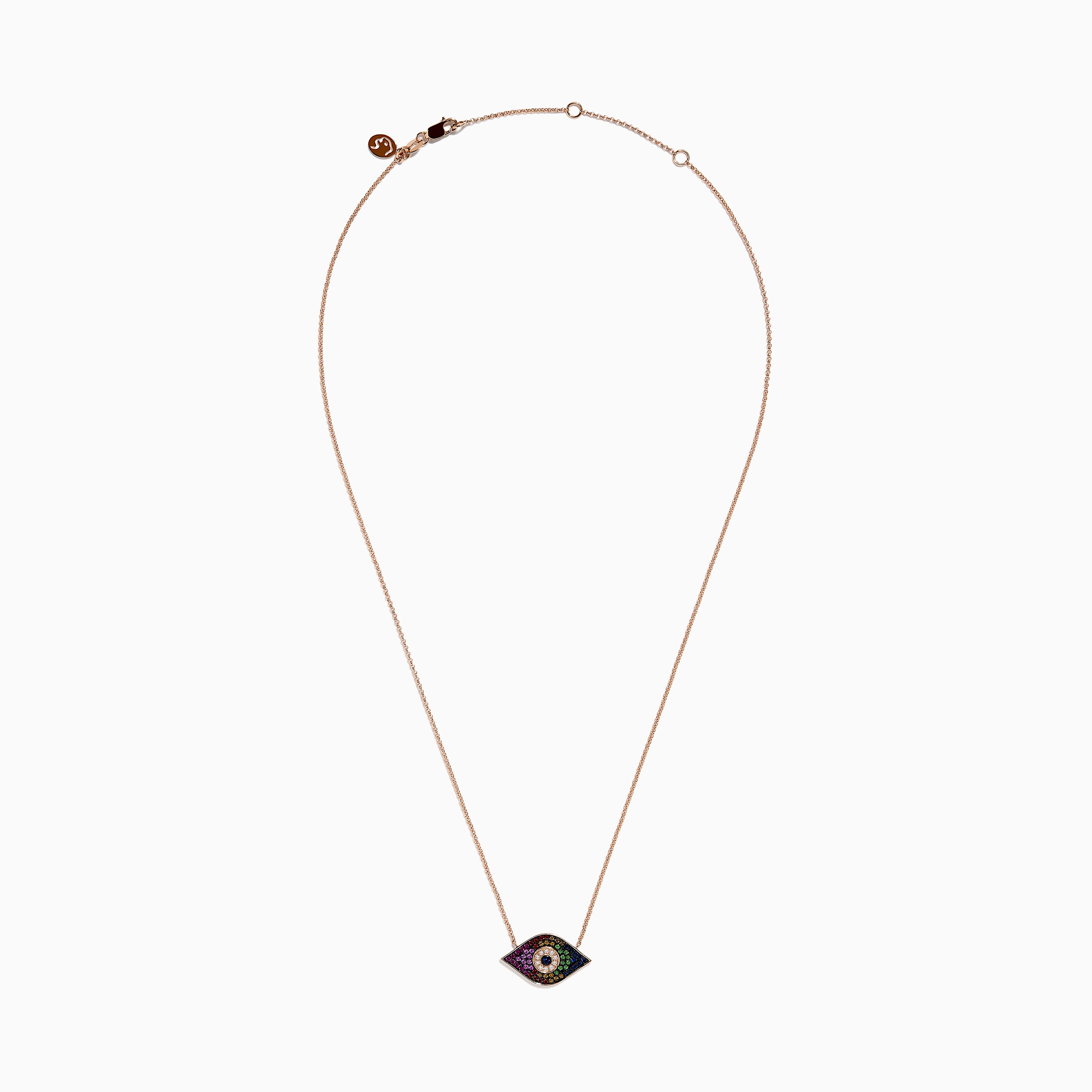 Effy Novelty 14K Rose Gold Multi Sapphire & Diamond Evil Eye Necklace