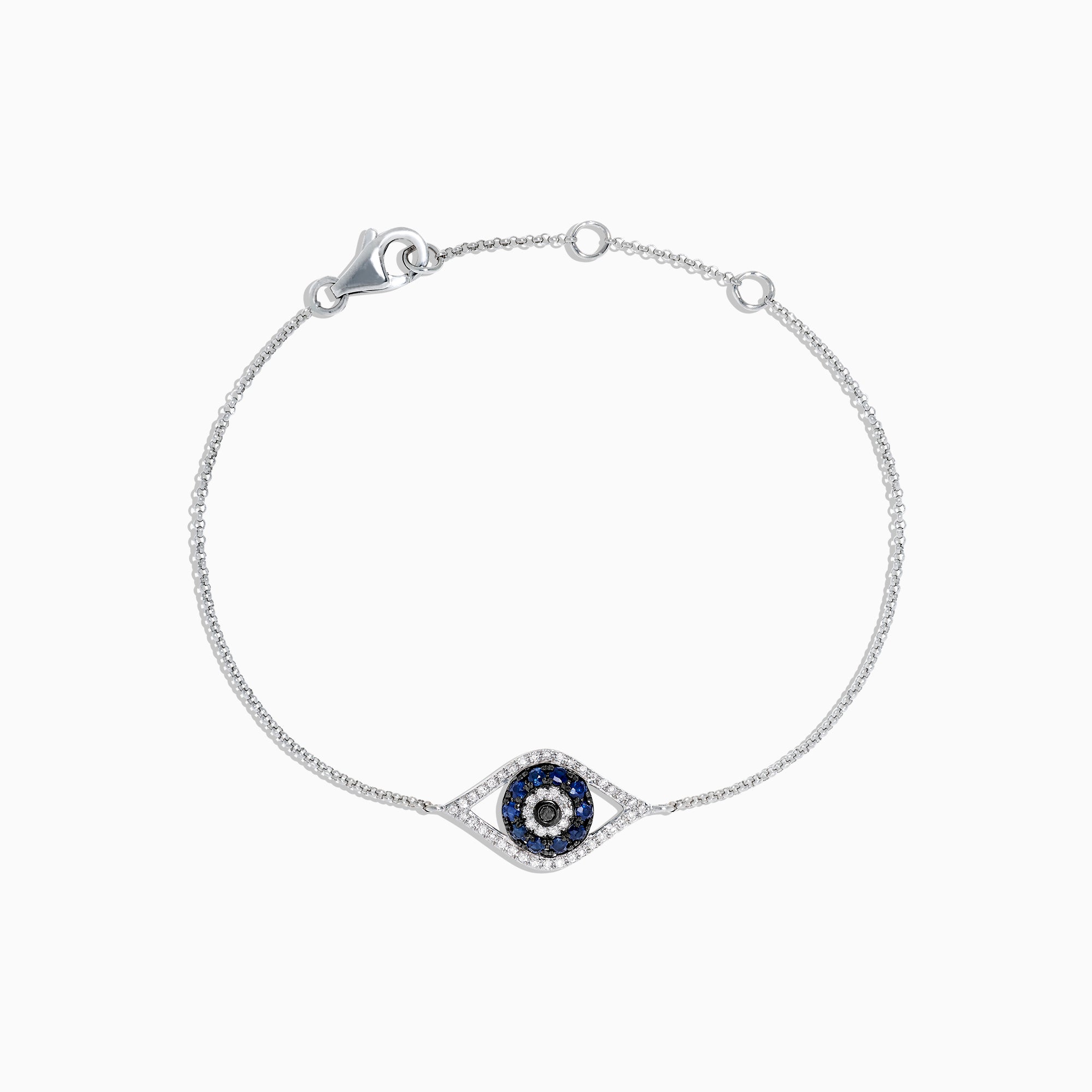 Effy Novelty 14K White Gold Sapphire & Diamond Evil Eye Bracelet, 0.43 TCW