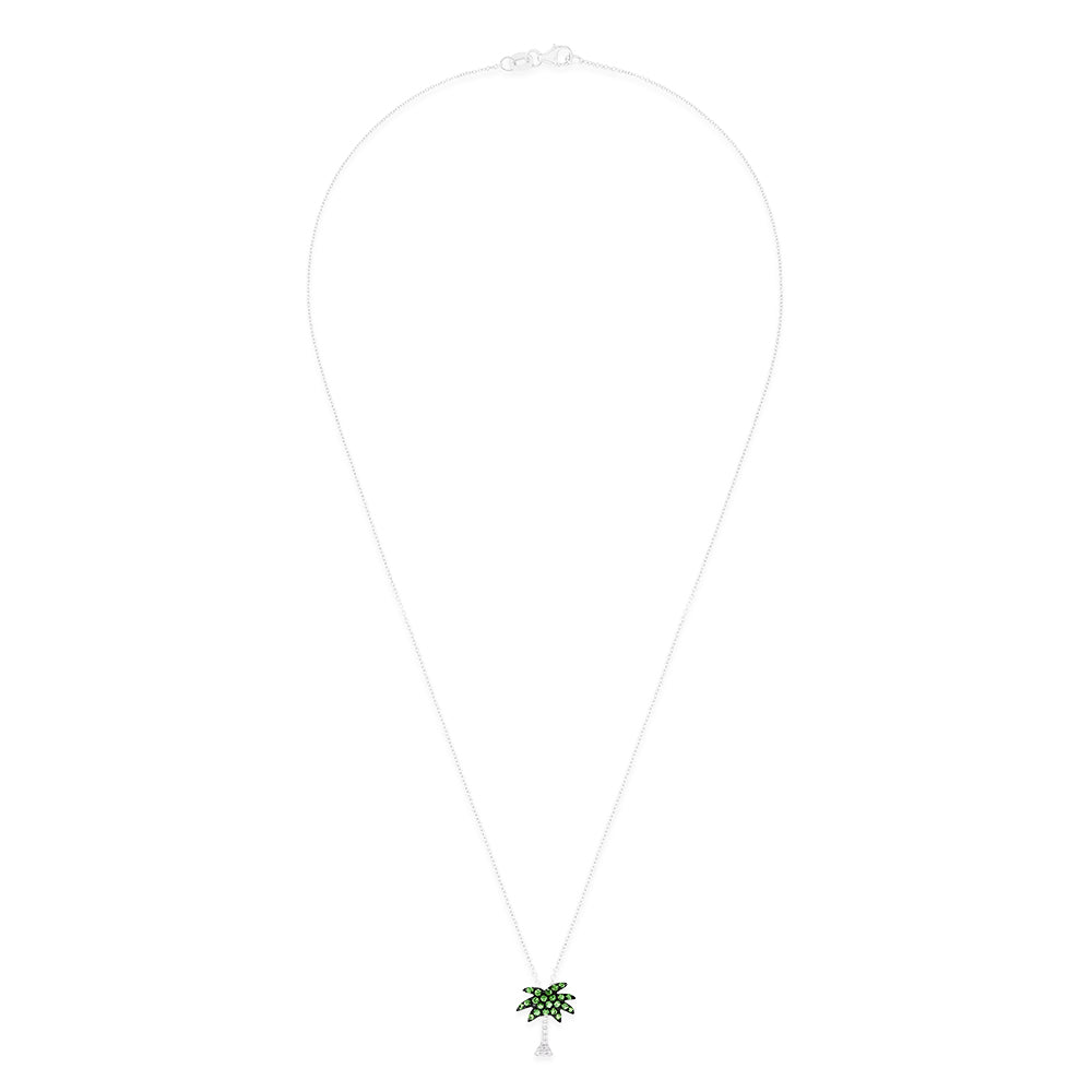 Novelty 14K White Gold Tsavorite & Diamond Palm Tree Pendant, 0.29 TCW