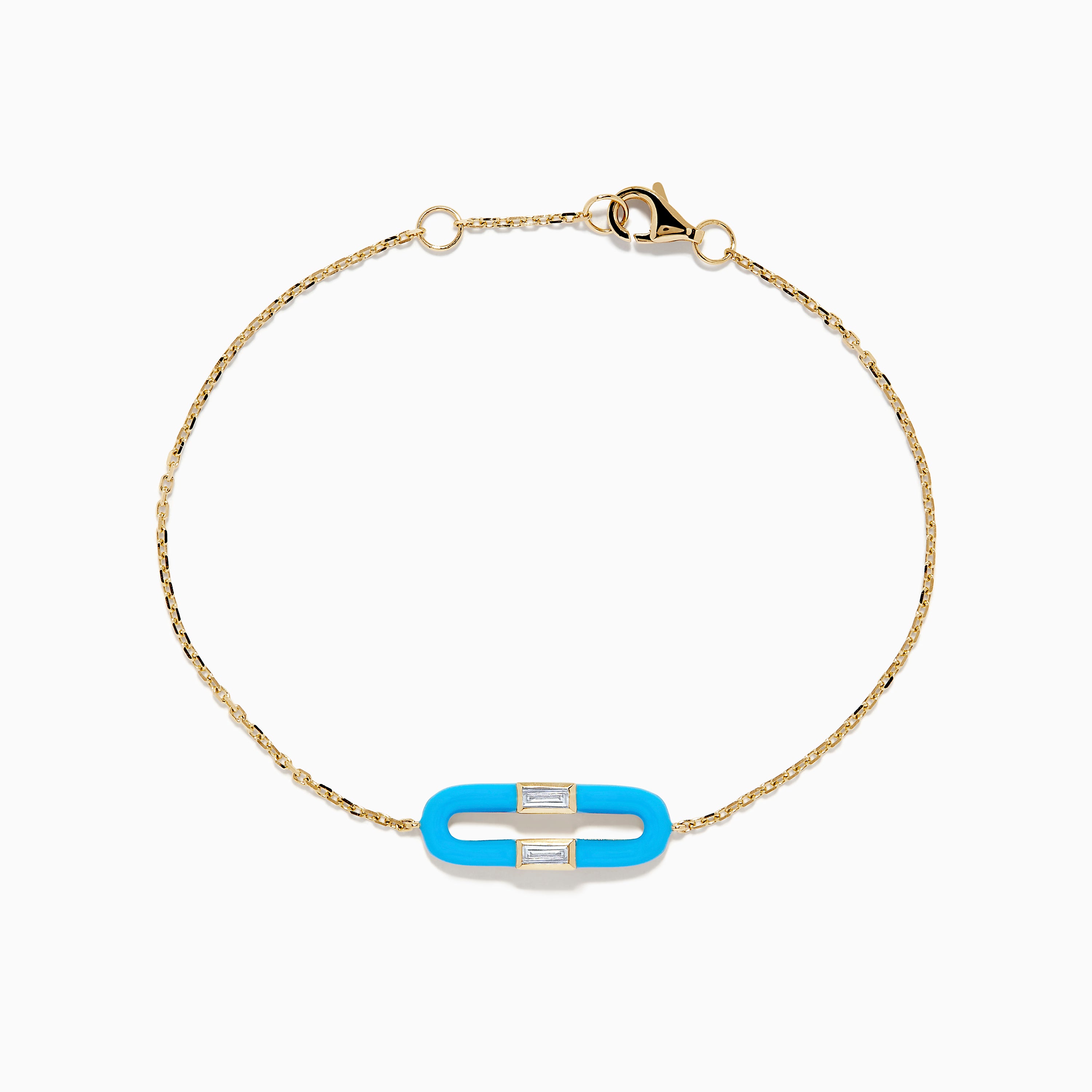 Effy Novelty 14K Yellow Gold Diamond and Enamel Paperclip Bracelet