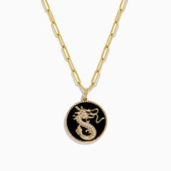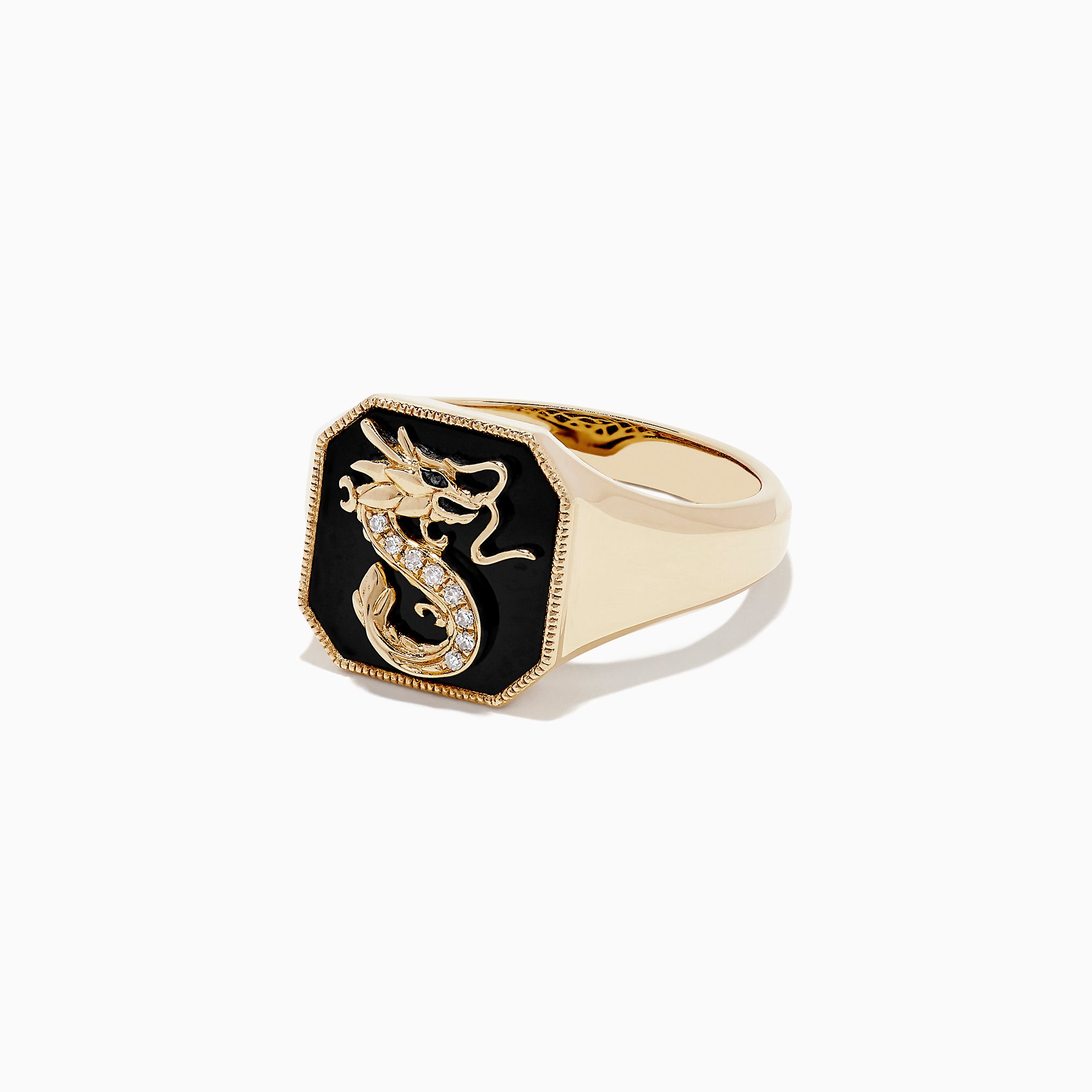 Effy Novelty 14K Yellow Gold Onyx and Diamond Dragon Signet Ring, 1.91 TCW