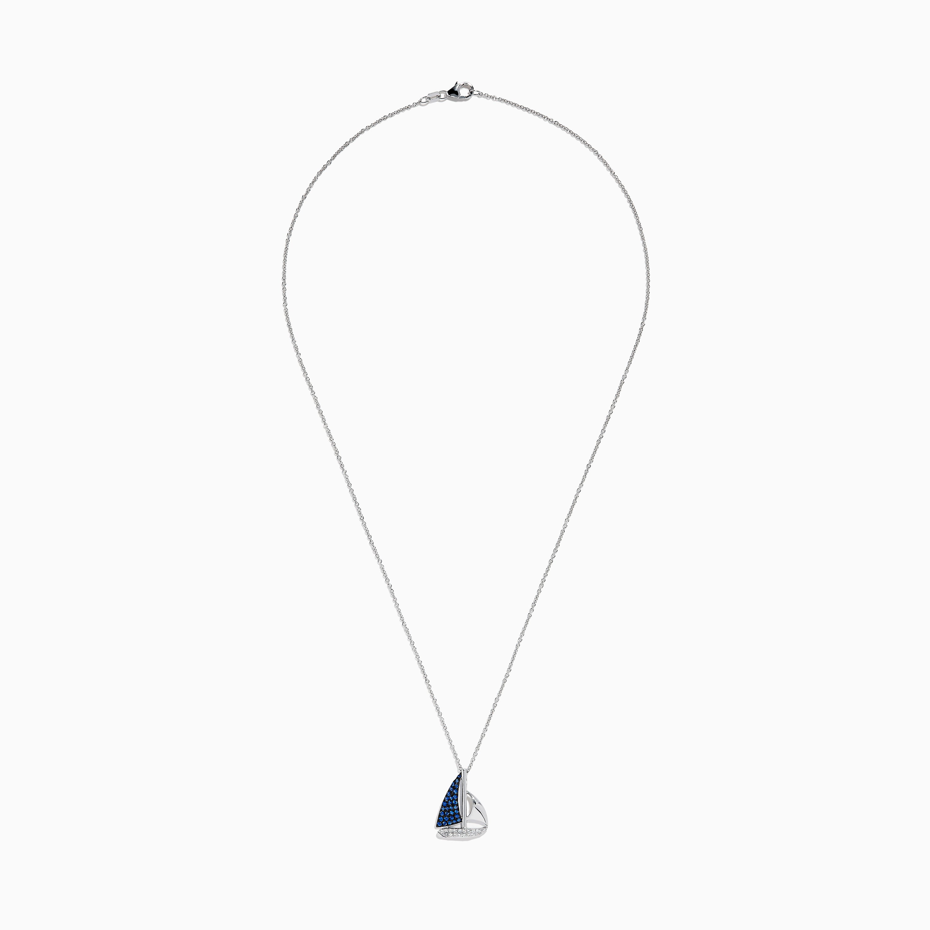 Effy Novelty 925 Sterling Silver Blue Sapphire and Diamond Sailboat Pendant