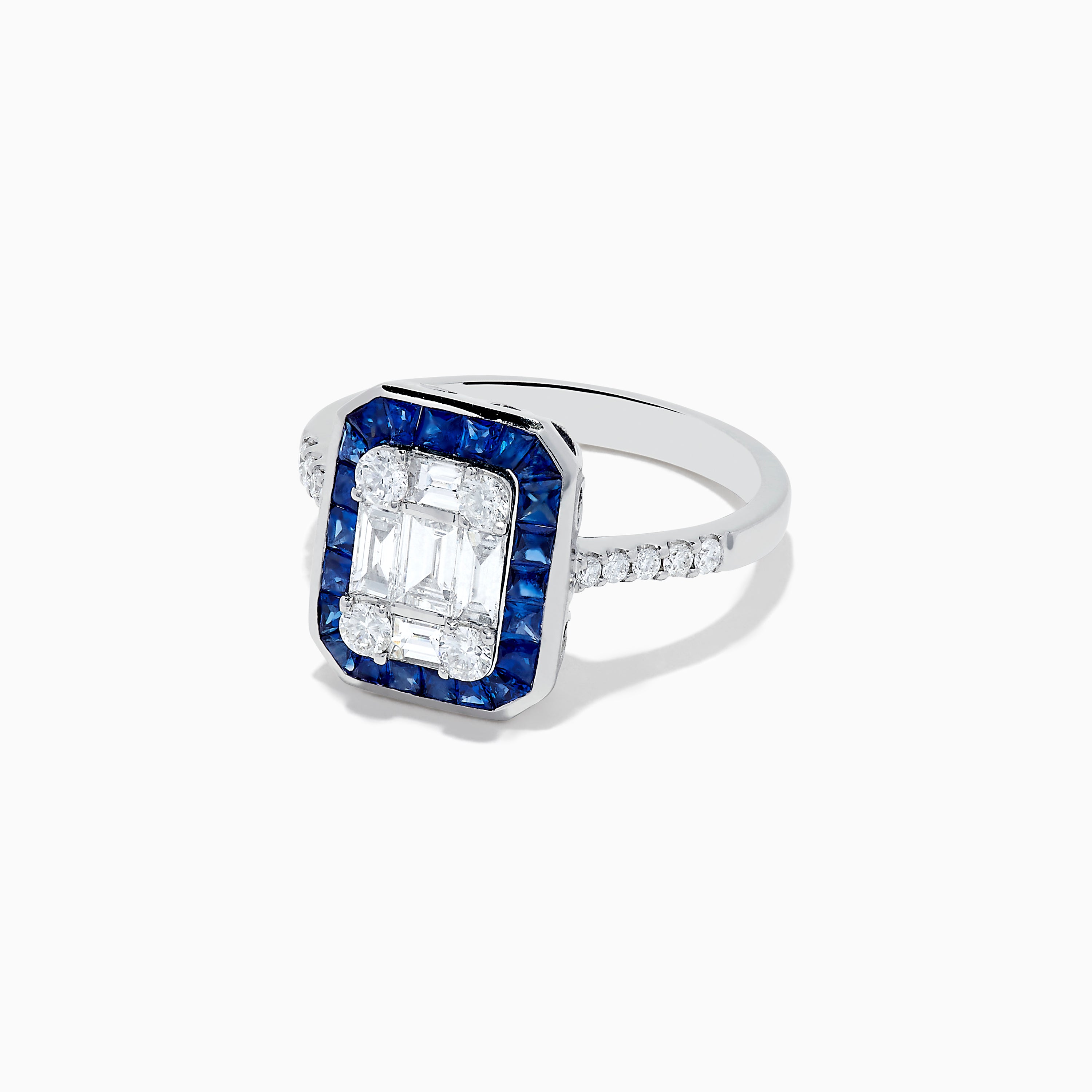 Effy Royale Bleu 14K White Gold Blue Sapphire and Diamond Deco Ring