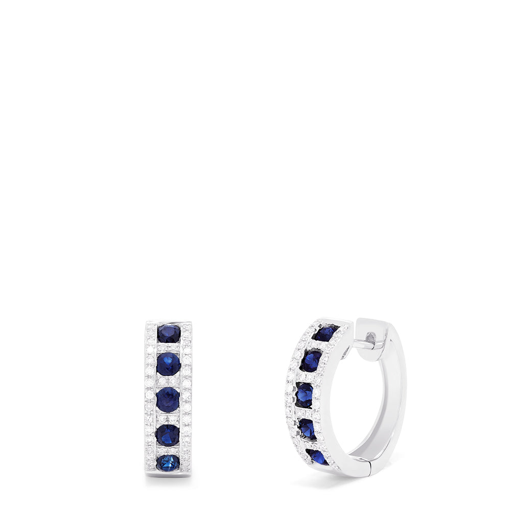 Royale Bleu 14K White Gold Sapphire & Diamond Hoop Earrings, 1.03 TCW