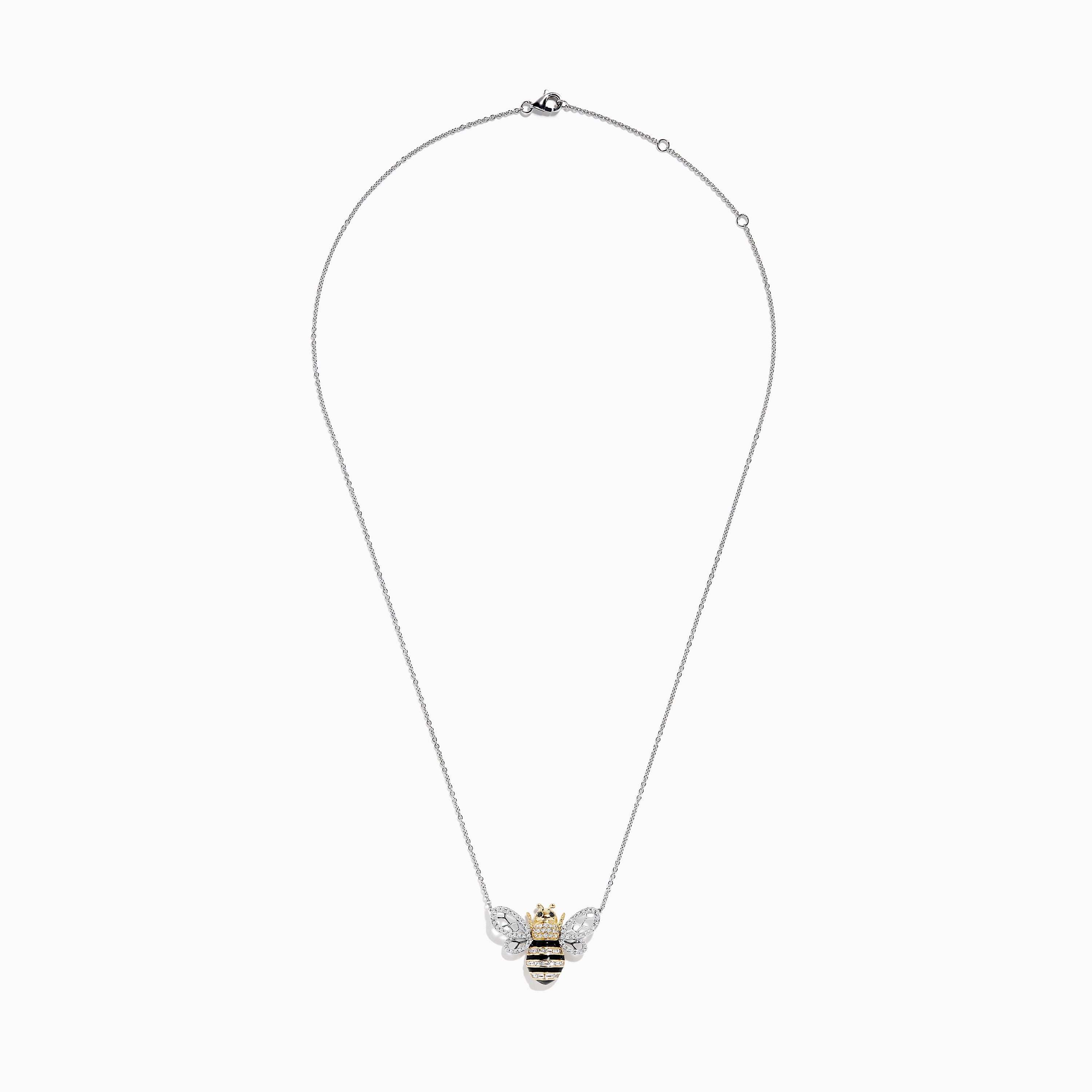 Effy Safari 14K White Gold White and Black Diamond Bee Necklace