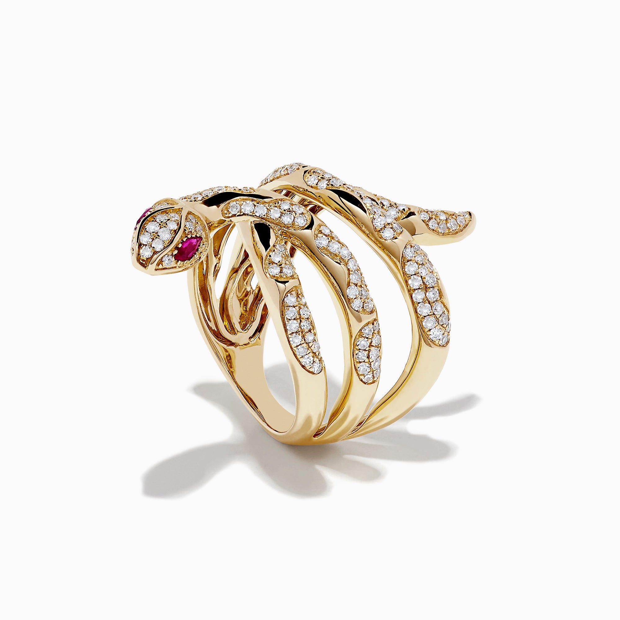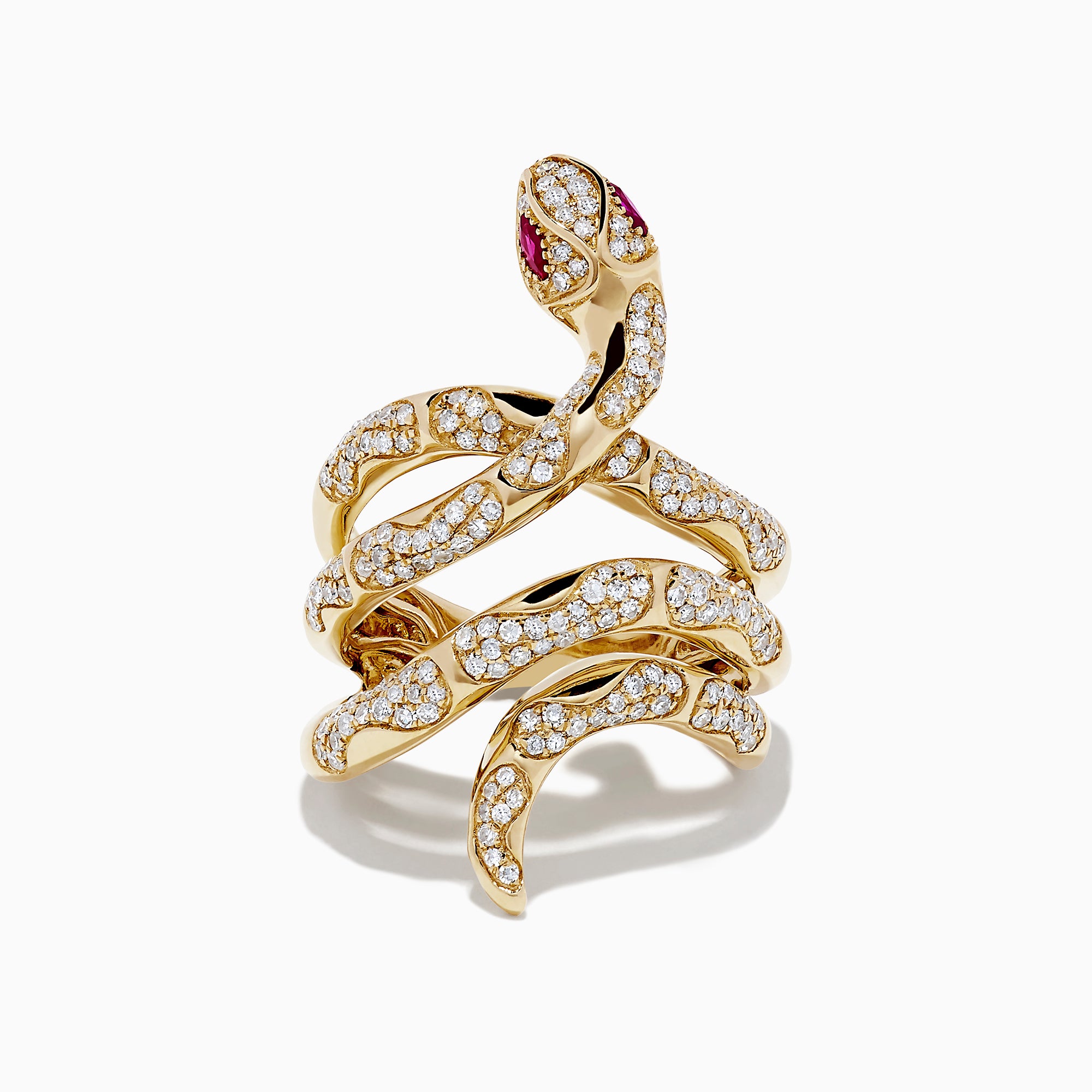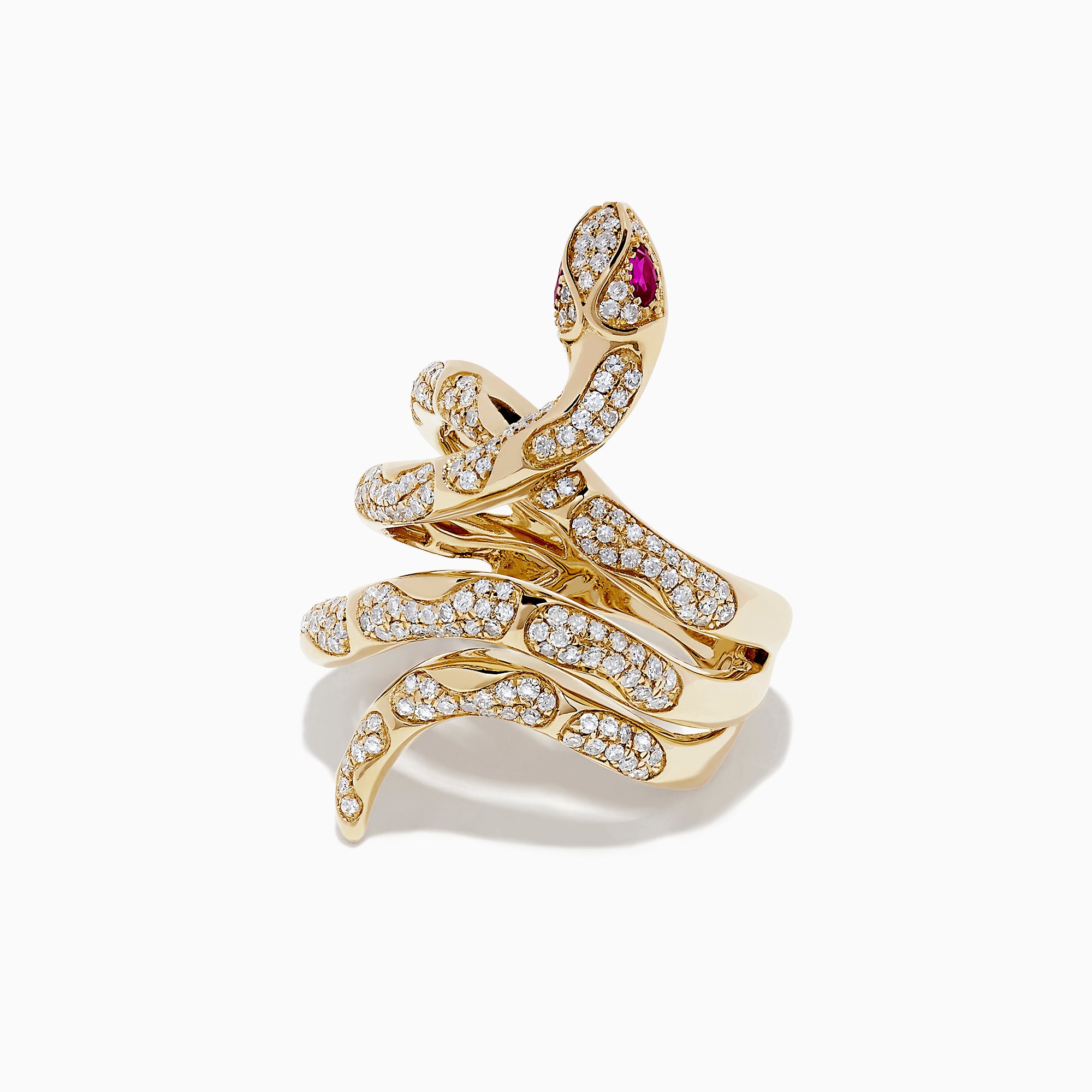 Effy Safari 14K Yellow Gold Diamond and Ruby Snake Ring, 0.89 TCW