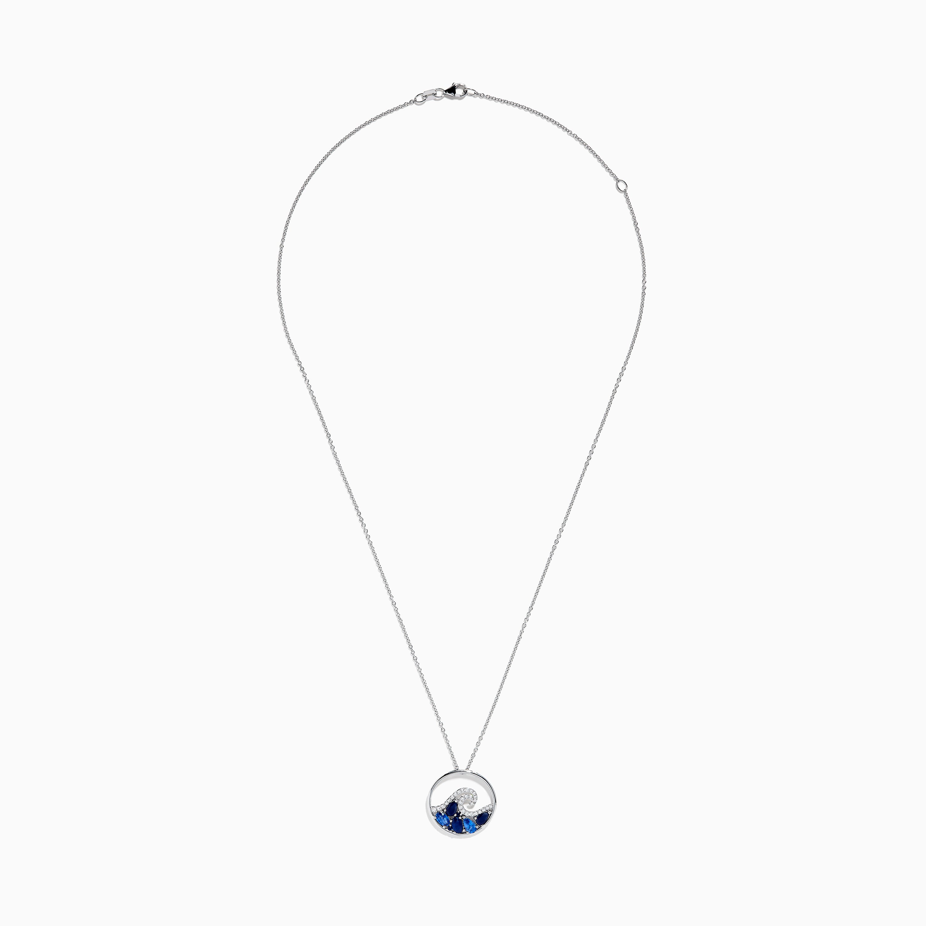 Effy Seaside 14K White Gold Blue Sapphire and Diamond Wave Pendant