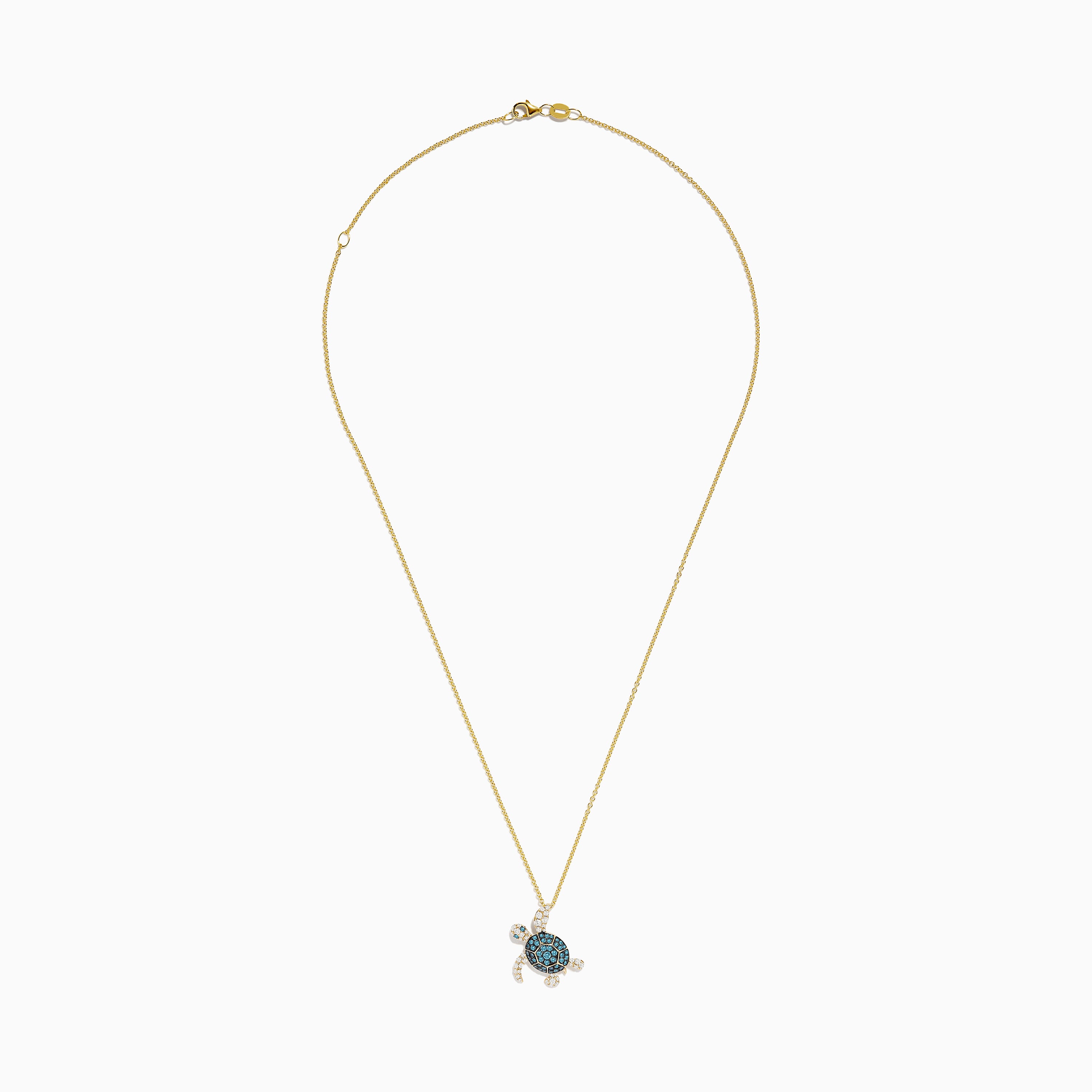 Effy Seaside 14K Yellow Gold Blue and White Diamond Turtle Pendant