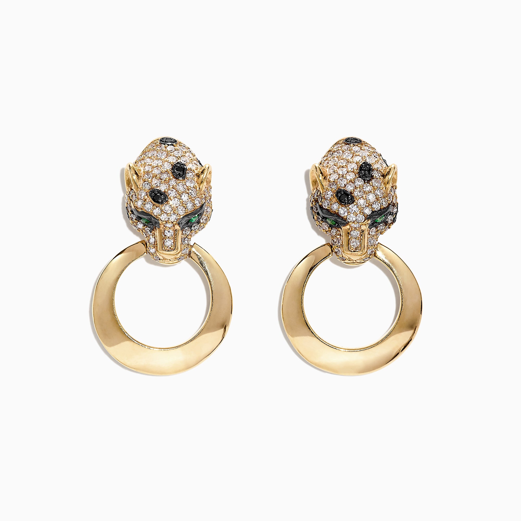 Effy Signature 14K Yellow Gold Diamond Emerald Panther Earrings, 0.93 TCW
