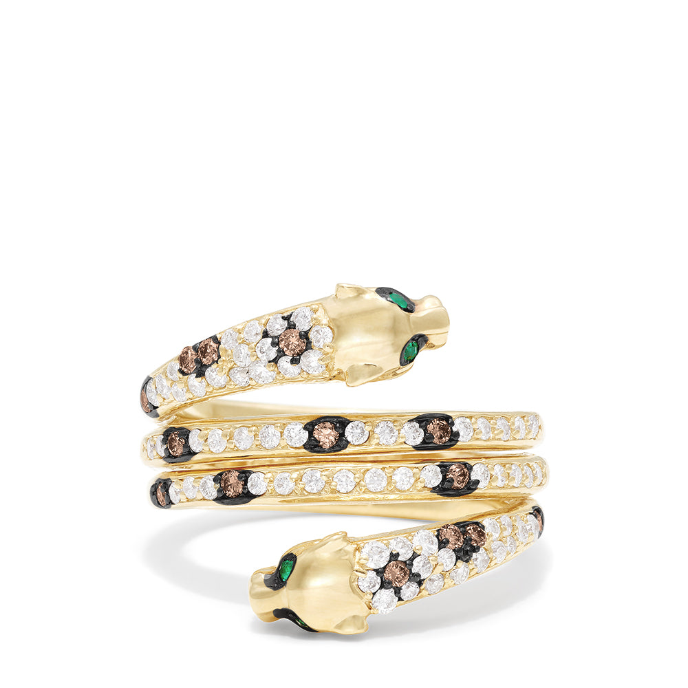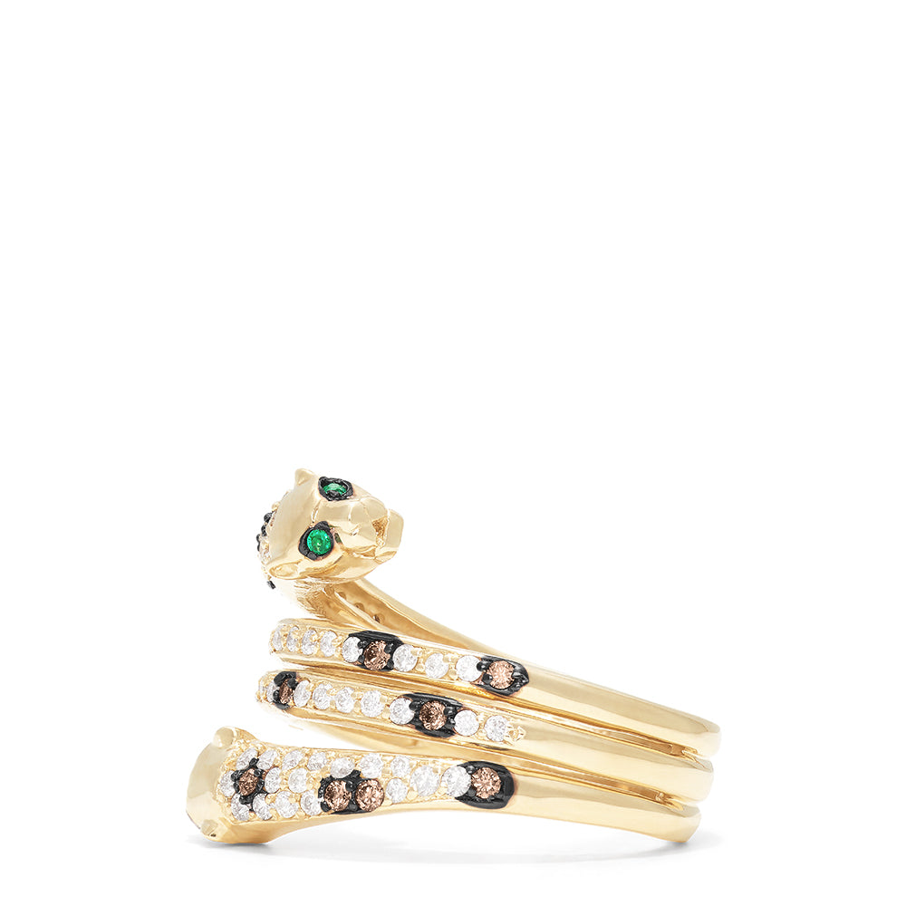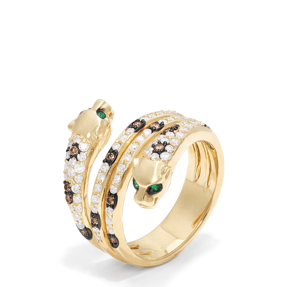 Effy Signature 14K Yellow Gold Emerald and Diamond Panther Ring, 0.67 TCW