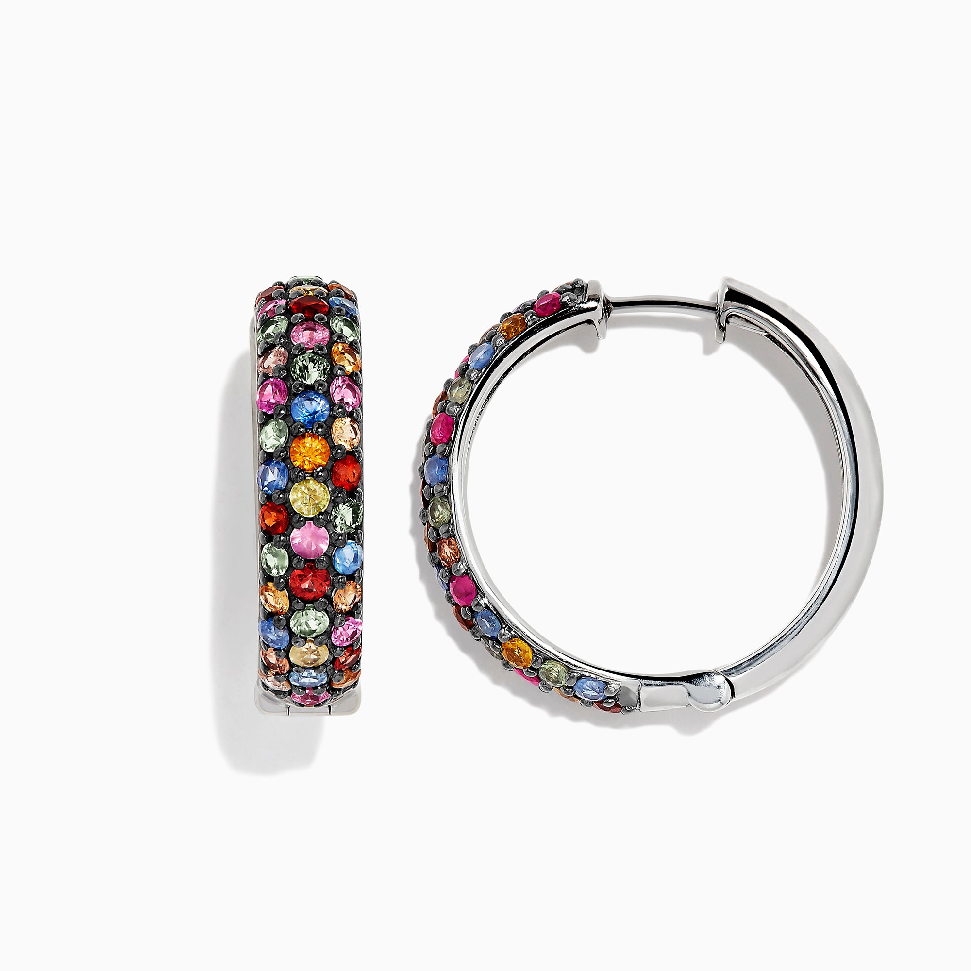 Effy Splash Silver Multi Sapphire 1" Hoop Earrings, 4.08 TCW
