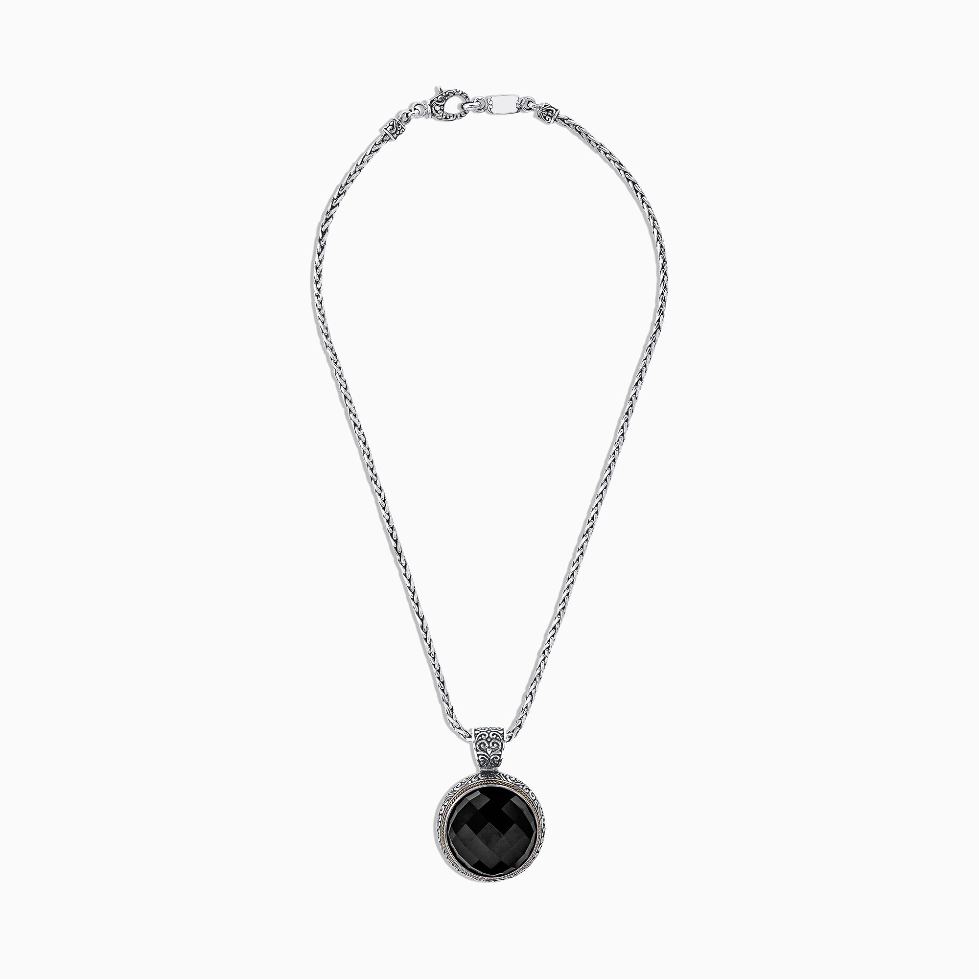 Effy Sterling Silver and 18K Yellow Gold Round Onyx Pendant, 36.50 TCW