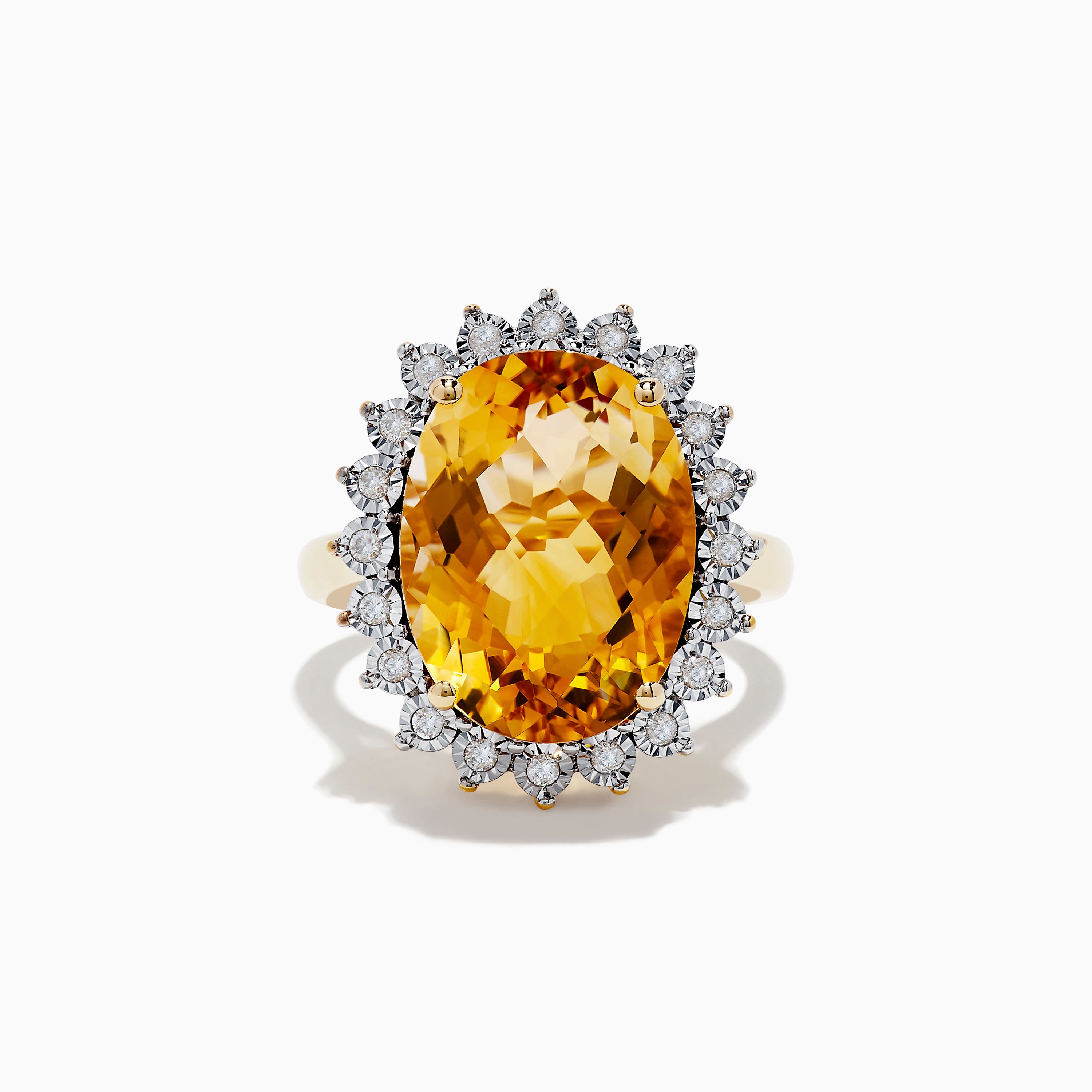 Effy Sunset 14K Yellow Gold Citrine and Diamond Ring