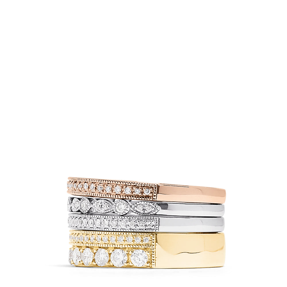 Trio 14K Tri Color Gold Diamond 4 Ring Stack, 1.00 TCW
