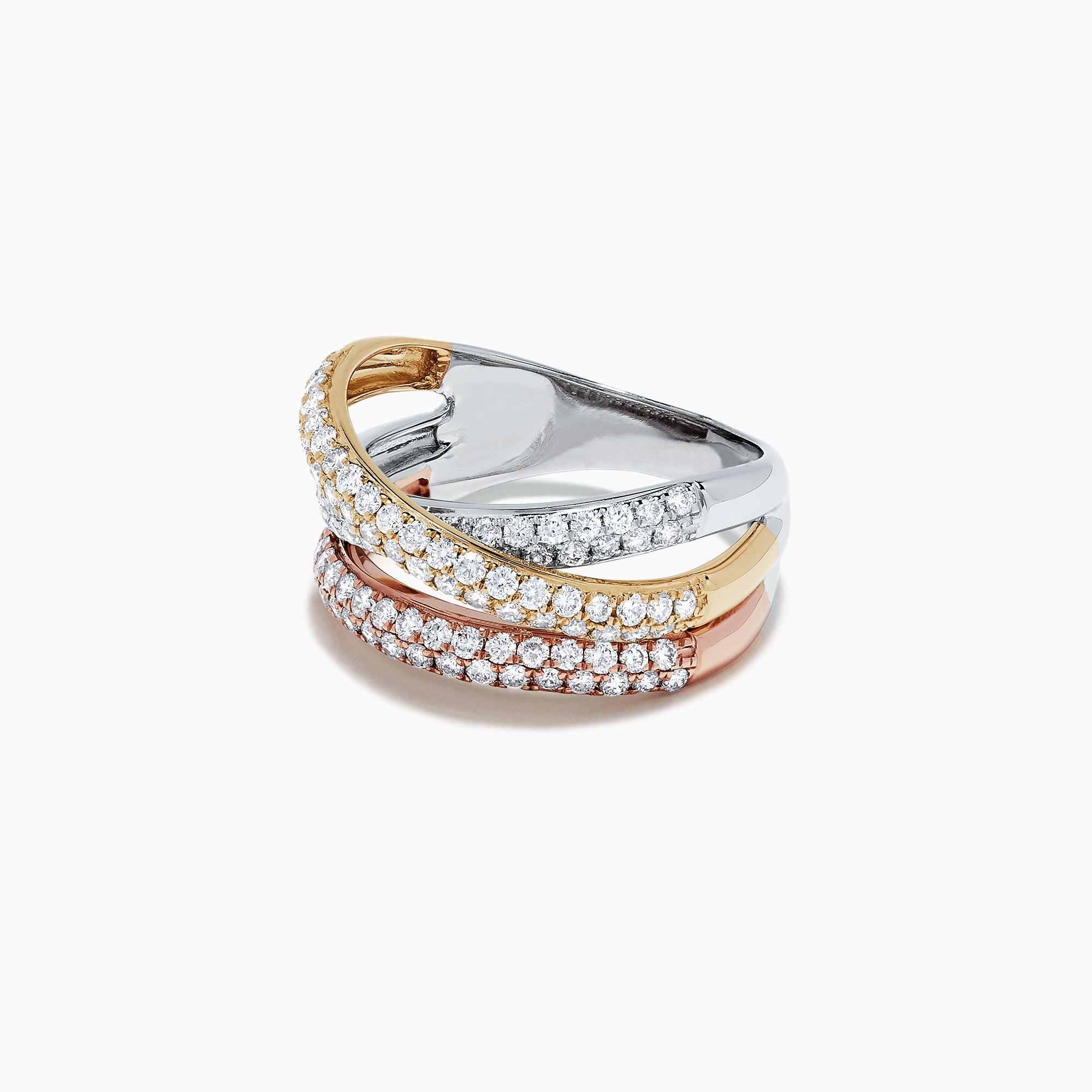 Effy Trio 14K Tri-Color Gold Diamond Ring, 0.98 TCW