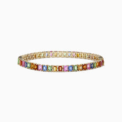 Watercolor 14k Gold Emerald Cut Multi Sapphire Hoop Earrings