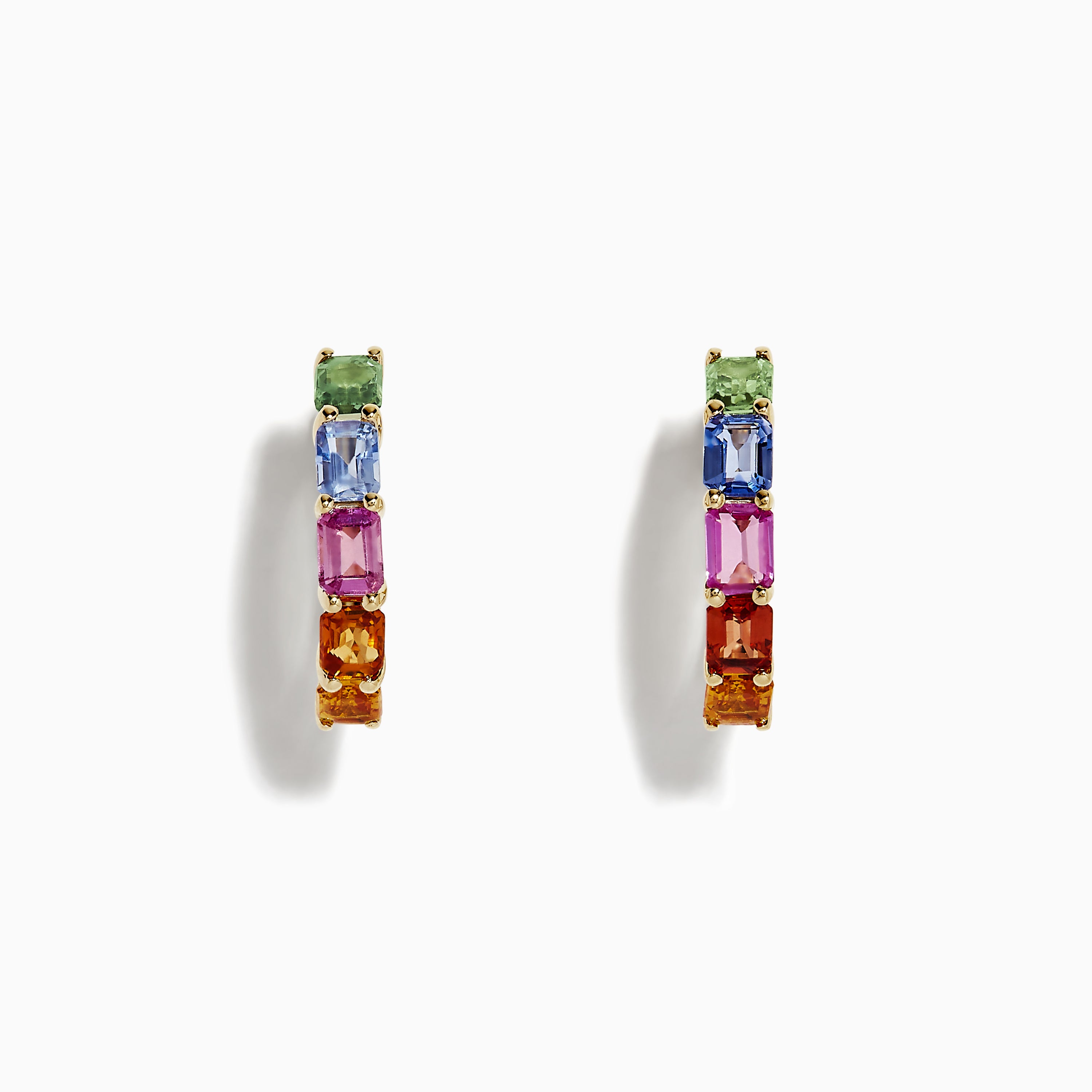 Effy Watercolor 14k Gold Emerald Cut Multi Sapphire Hoop Earrings
