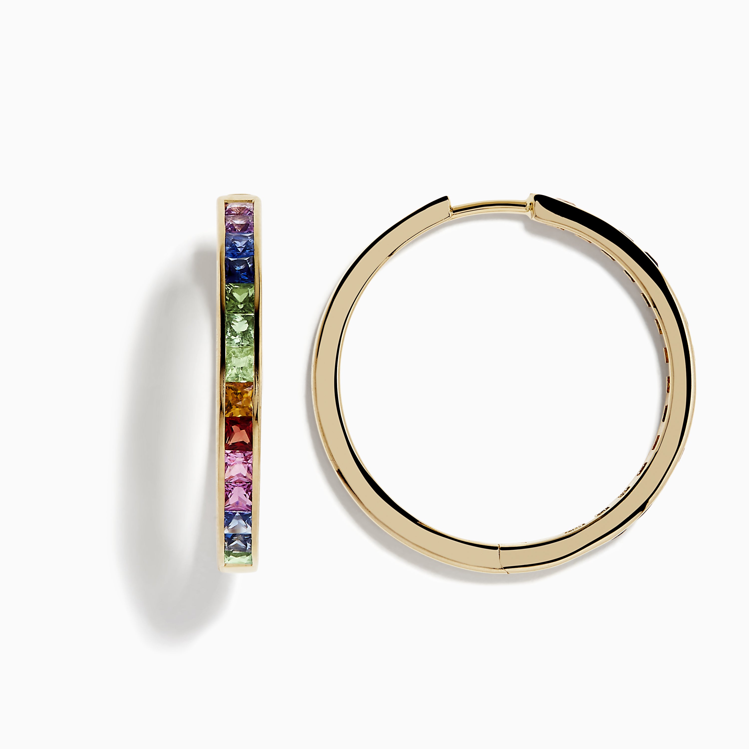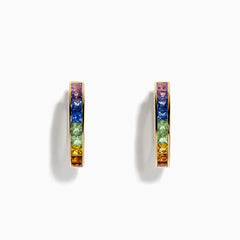 Effy Watercolor 14k Gold Princess Cut Multi Sapphire Hoop Earrings