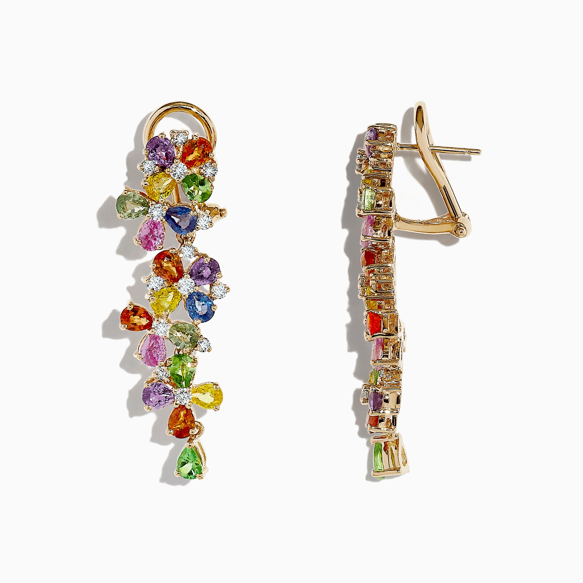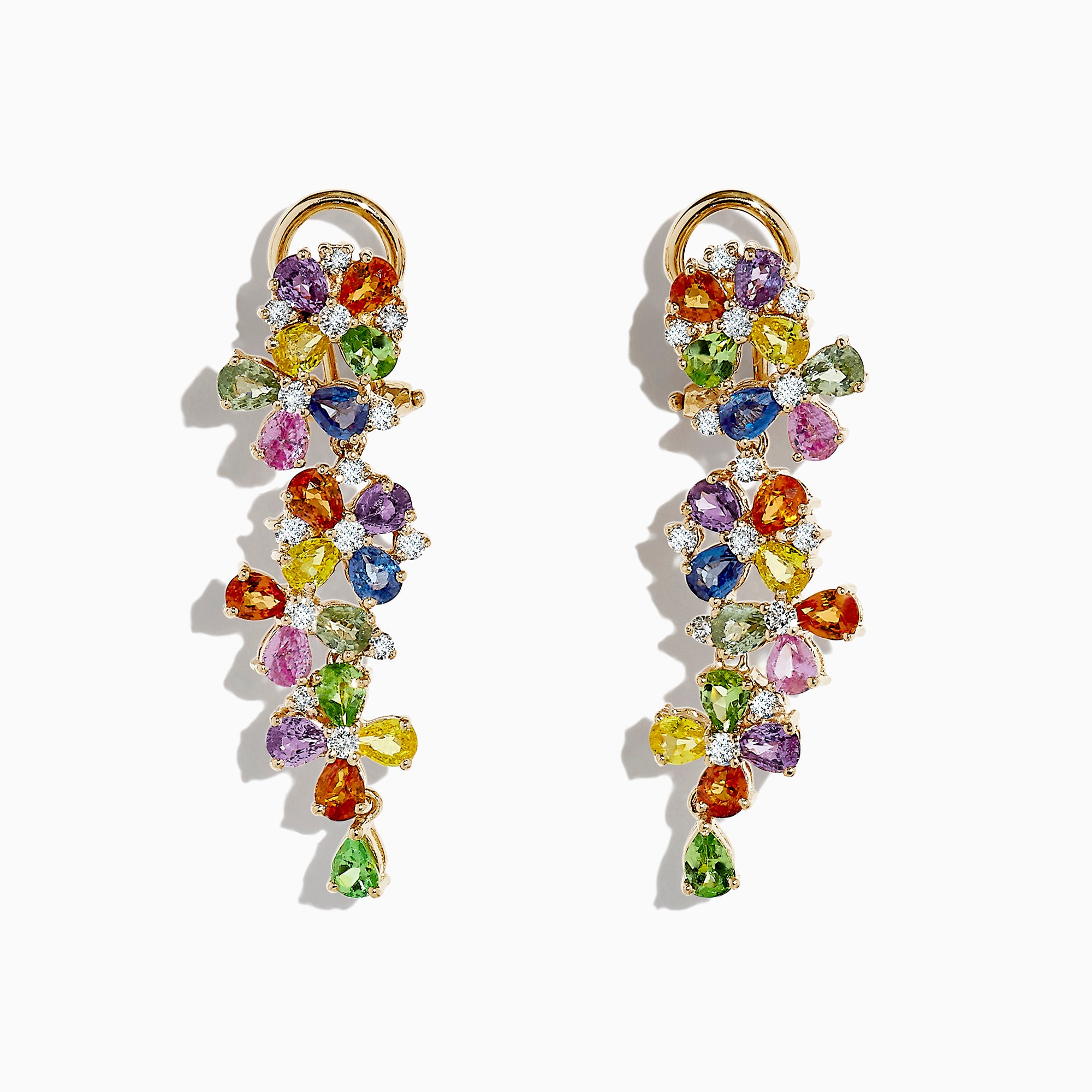 Effy Watercolors 14K Gold Multi Sapphire and Diamond Earrings, 9.68 TCW