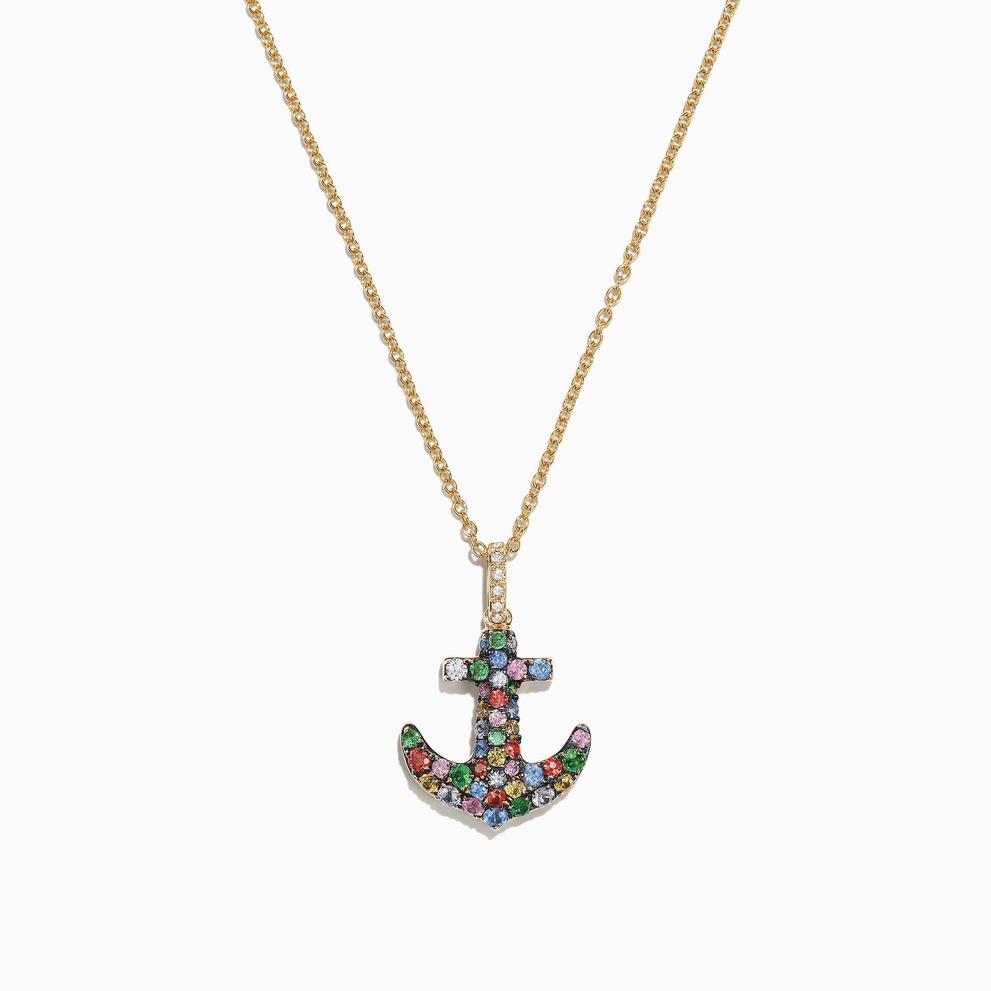 Effy Watercolors 14K Gold Multi Sapphire Diamond Anchor Pendant, 0.76 TCW