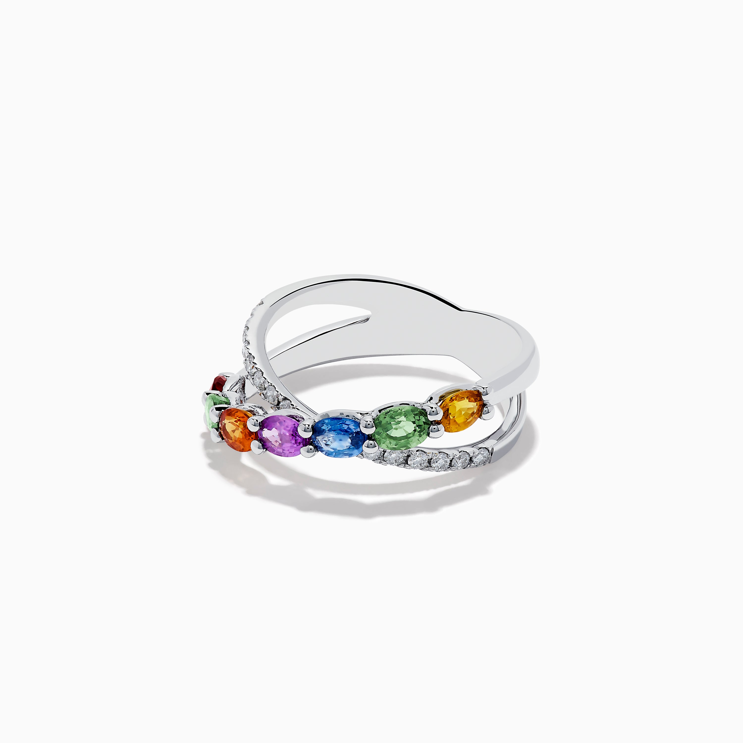 Effy Watercolors 14K White Gold Multi Sapphire and Diamond Crossover Ring