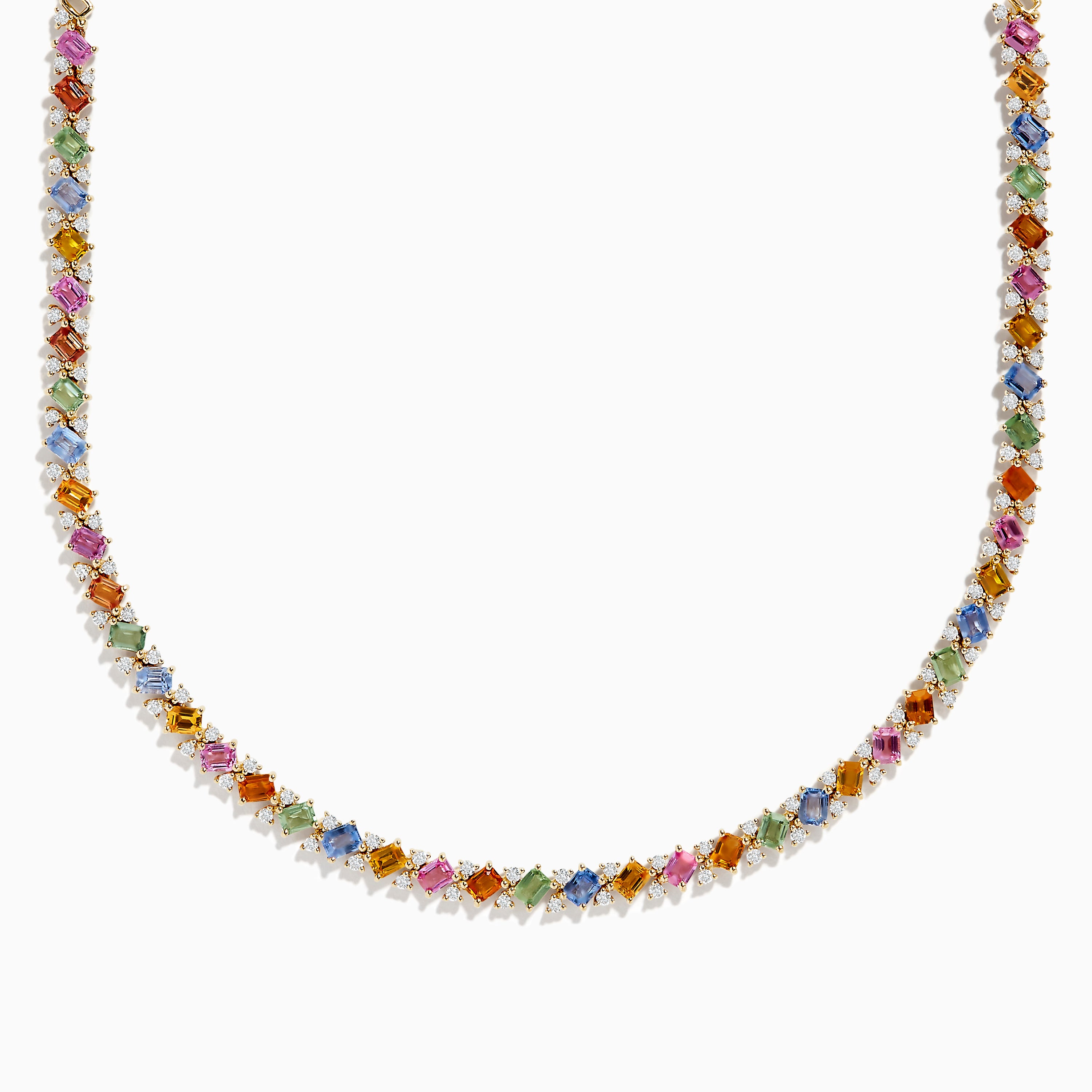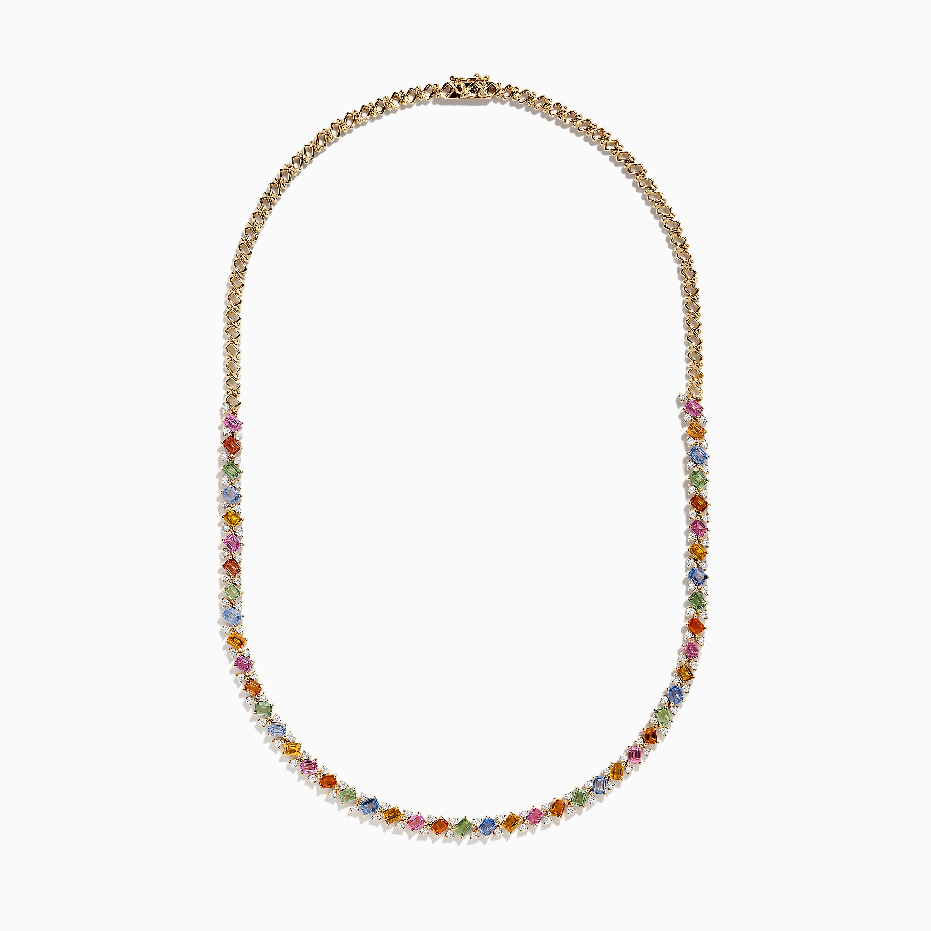 Effy Watercolors 14K Yellow Gold Multi Sapphire and Diamond Necklace