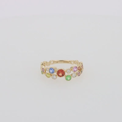 Watercolors 14K Yellow Gold Multi-Sapphire and Diamond Ring, 1.03 TCW