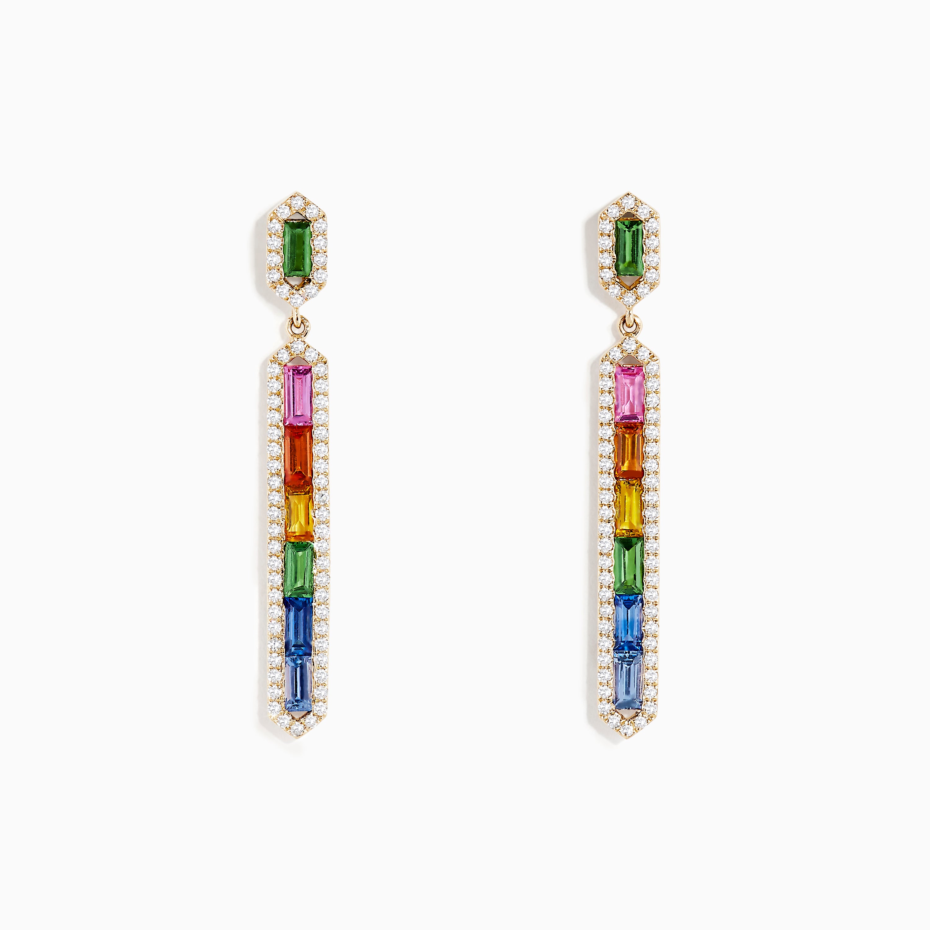 Effy Watercolors 14K Yellow Gold Multi Sapphire Drop Earrings