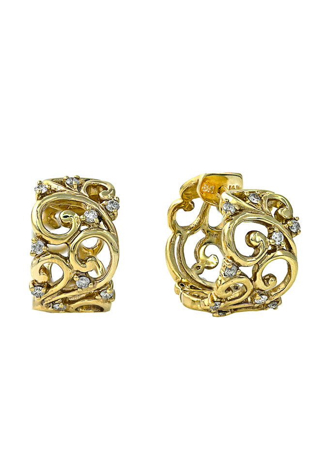 D'Oro 14K Yellow Gold Diamond Filigree Hoop Earrings