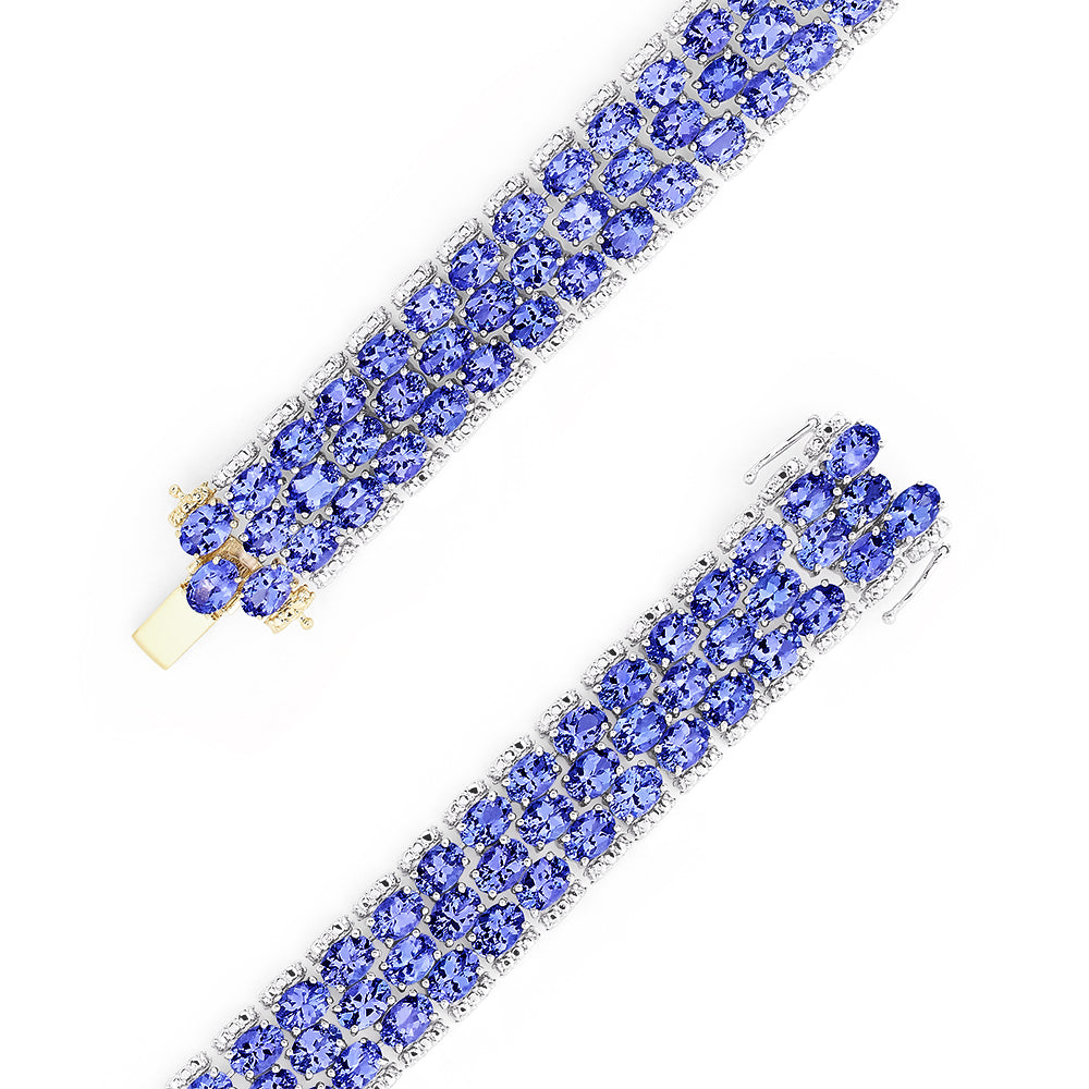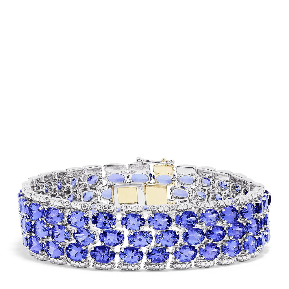 Sterling Silver with 14K Yellow Gold Lock Tanzanite Bracelet, 50.00 TCW